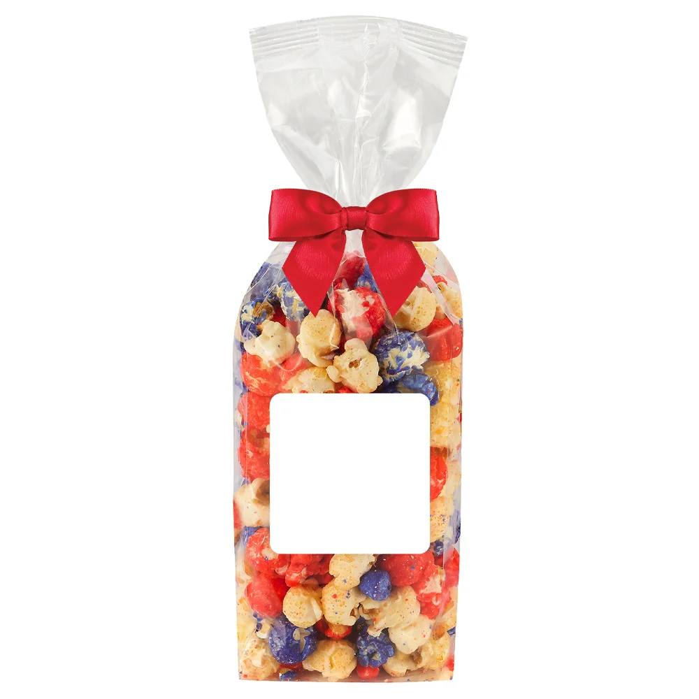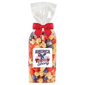 This patriotic popcorn bag is filled with delicious red (strawberry), white (sweet kettle) and blue (blueberry) popcorn and is a perfectway to promote your allegiance to the USA!