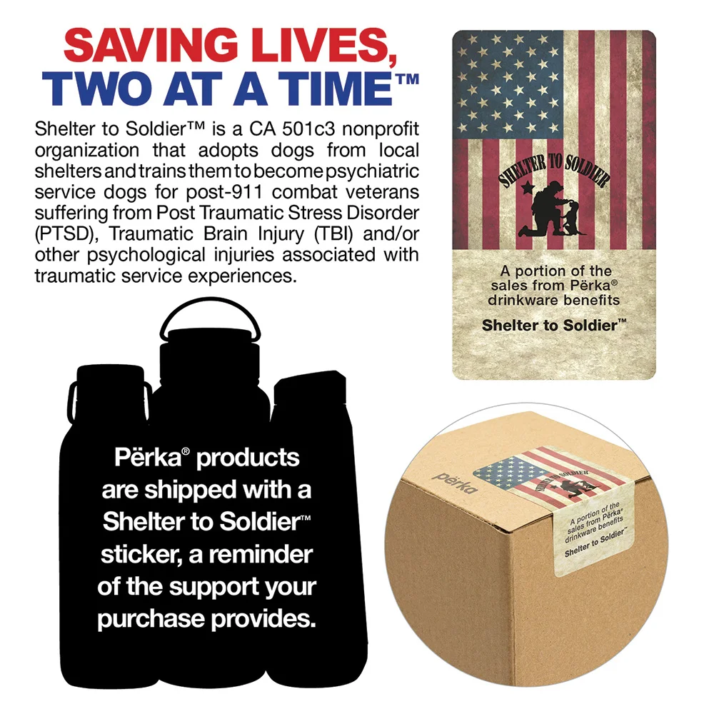 A portion of all proceeds is donated to Shelter to Soldier™, a non-profit organization that rescues dogs to train as service animals for veterans in need
