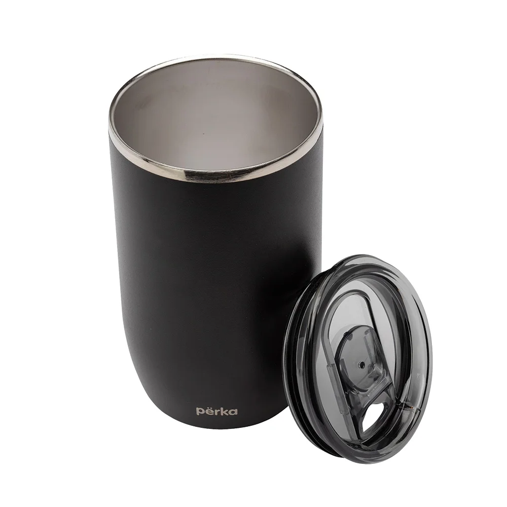 Vacuum insulated to keep beverages hot or cold for hours