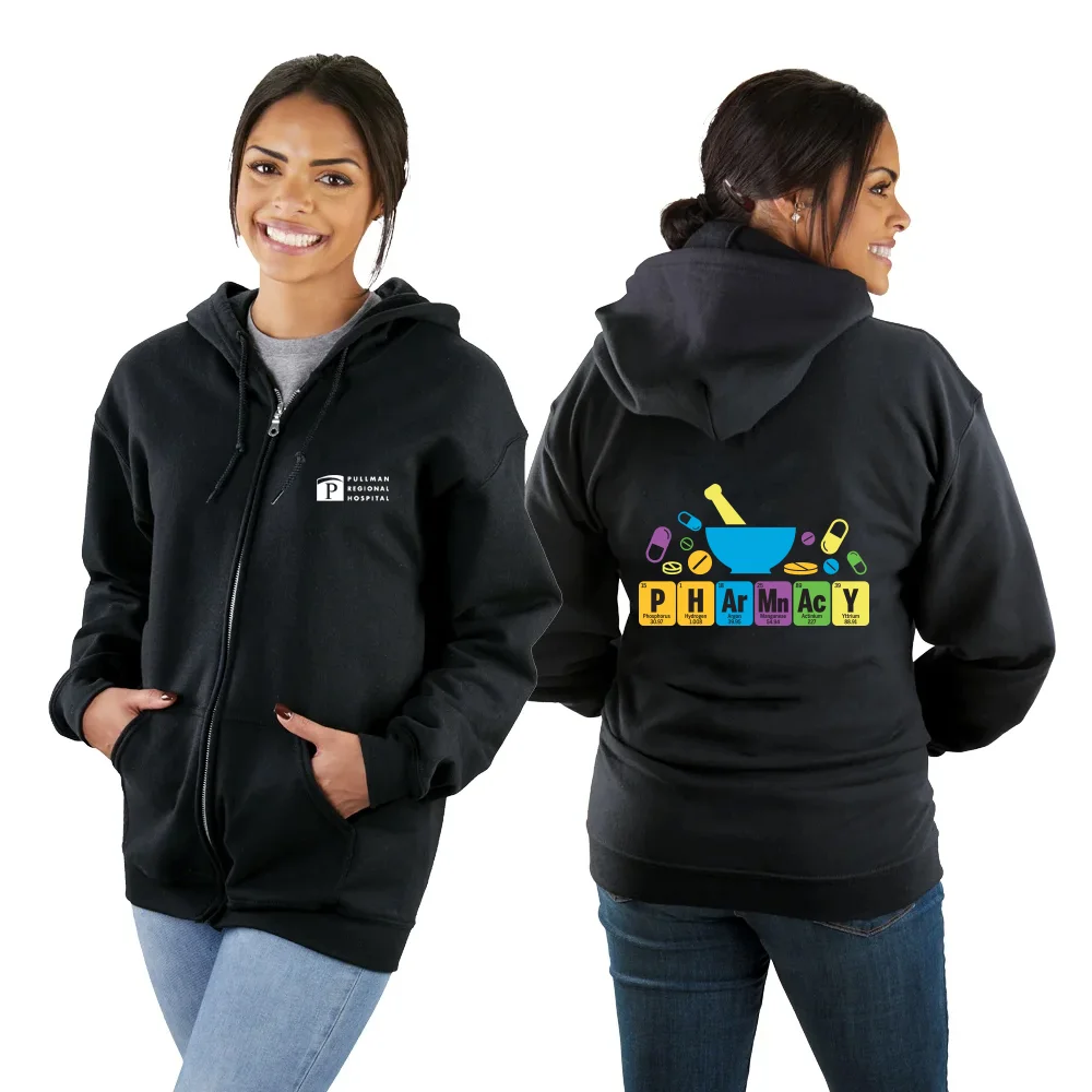 Pharmacy Team: The Perfect Dose of Caring Gildan® Unisex Heavy Blend Full-Zip Hooded Sweatshirt - Silkscreened Personalization Available