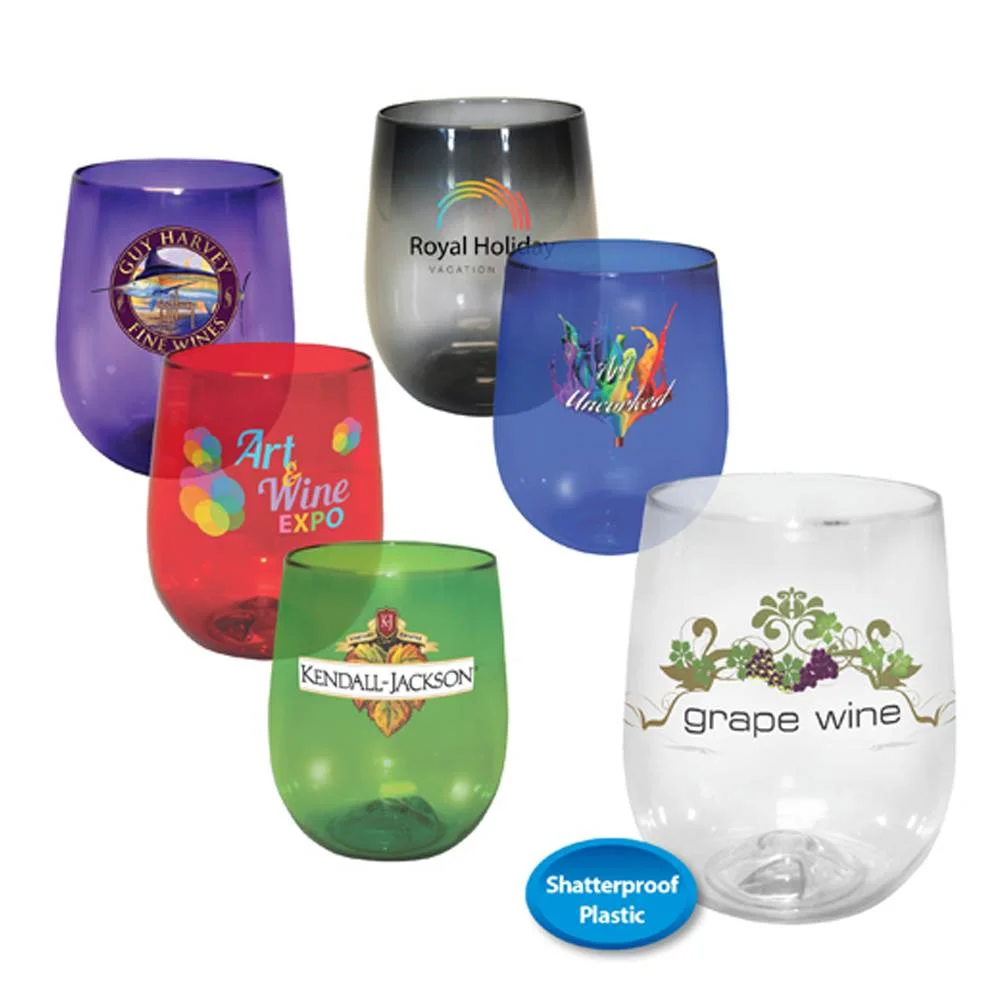 Plastic Stemless Wine Glass 12-oz., Full Color Digital Personalization Available