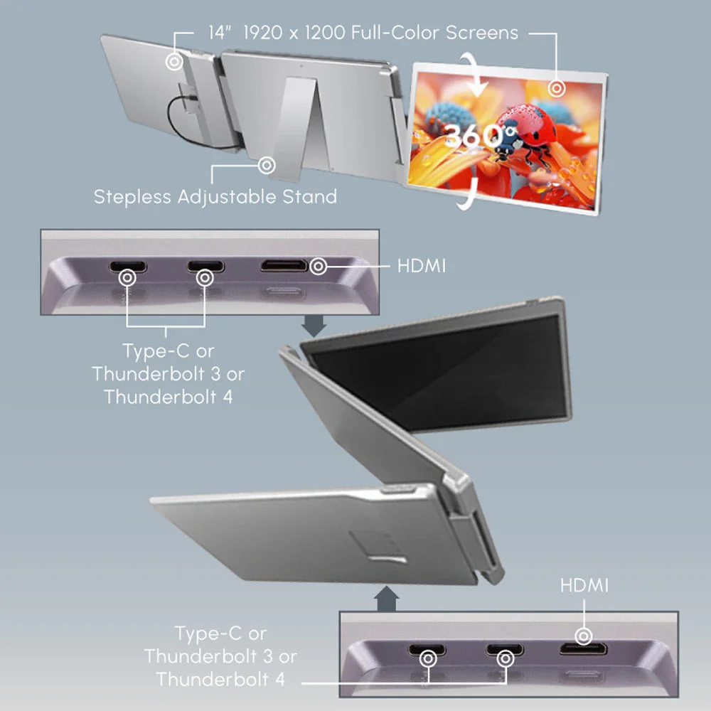 • Supports Type C, Thunderbolt 3, Thunderbolt 4, and HDMI