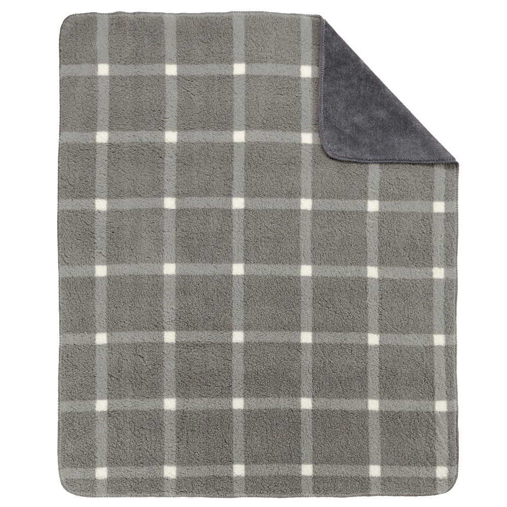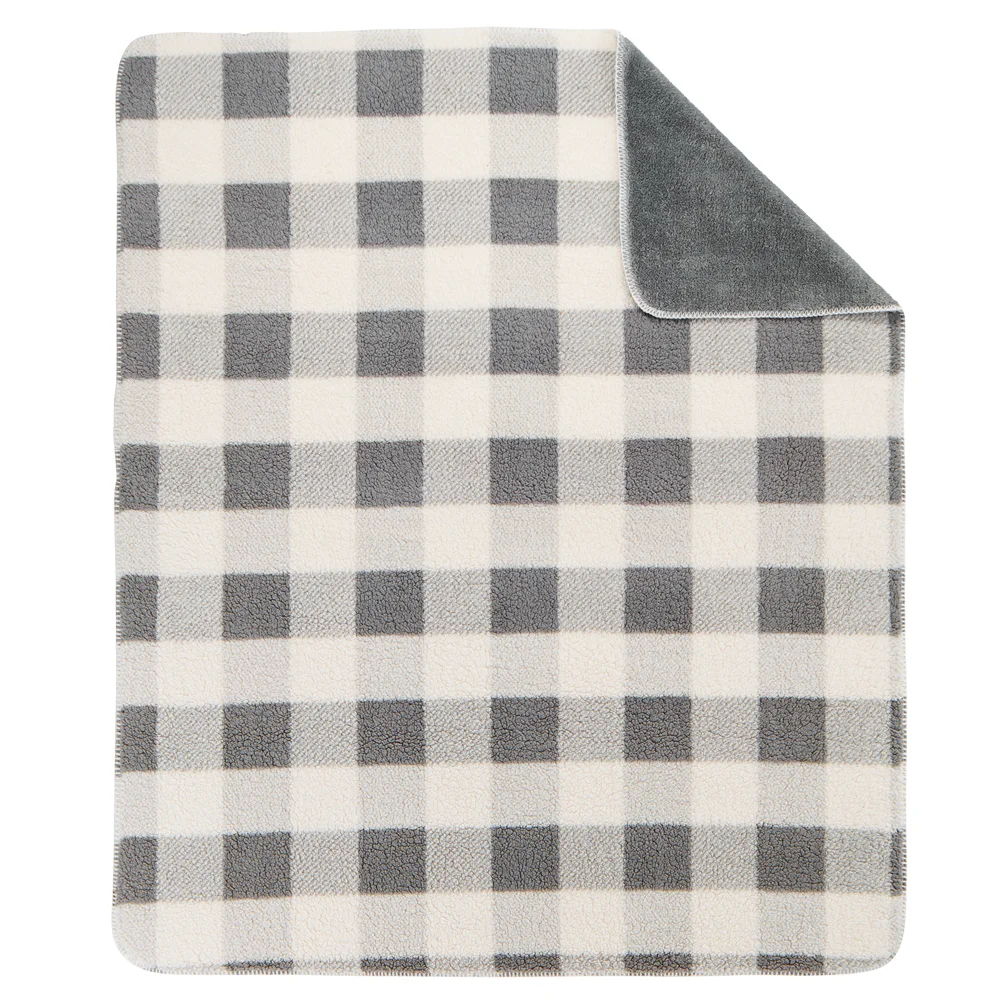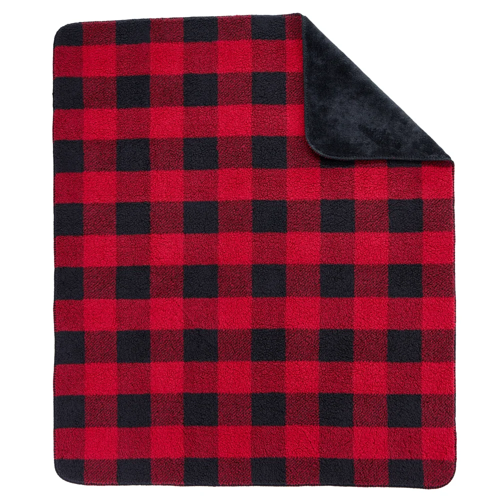 Perfect plush blanket for napping and lounging reverses from a fuzzy Sherpa, a synthetic fiber like lambswool, on one side to a high-pile plush on the other
