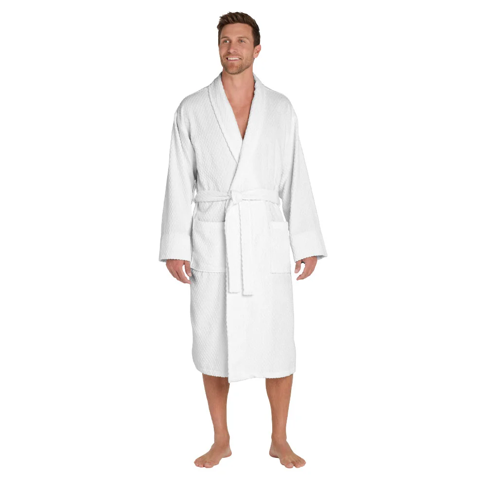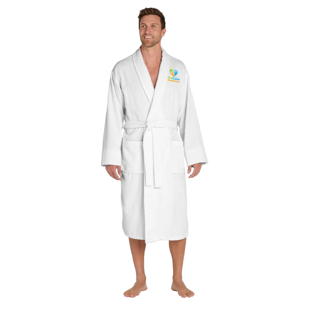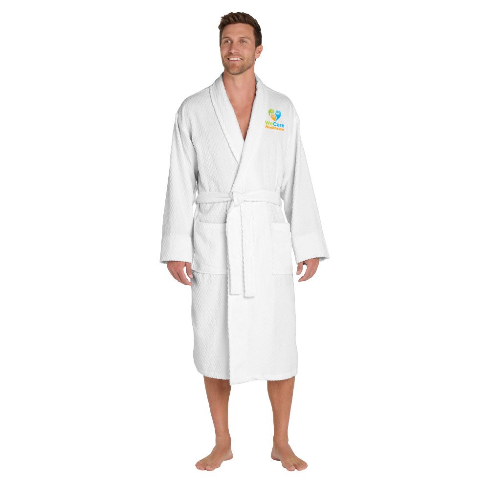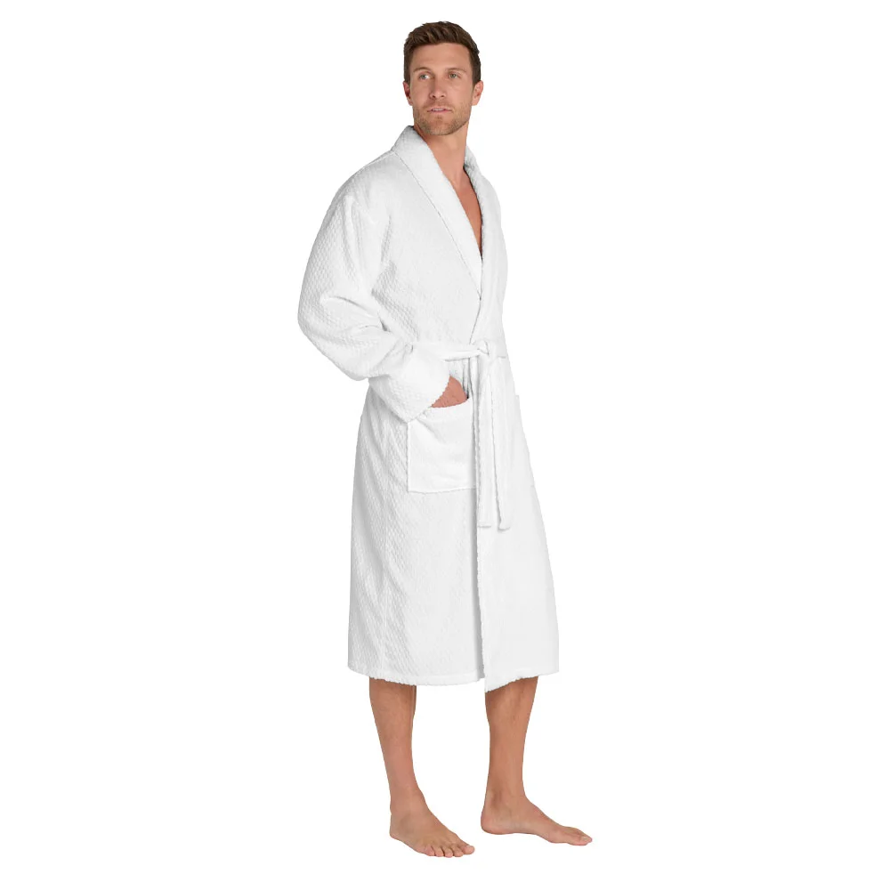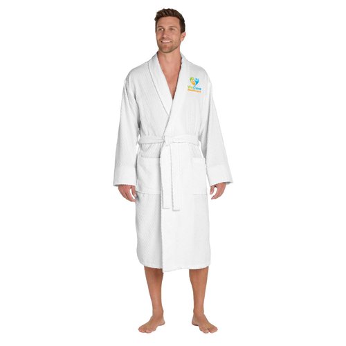 • A welcome indulgence, this cotton robe with its checkered texture and exceptional absorbency is perfect for the pool, spa or resort.