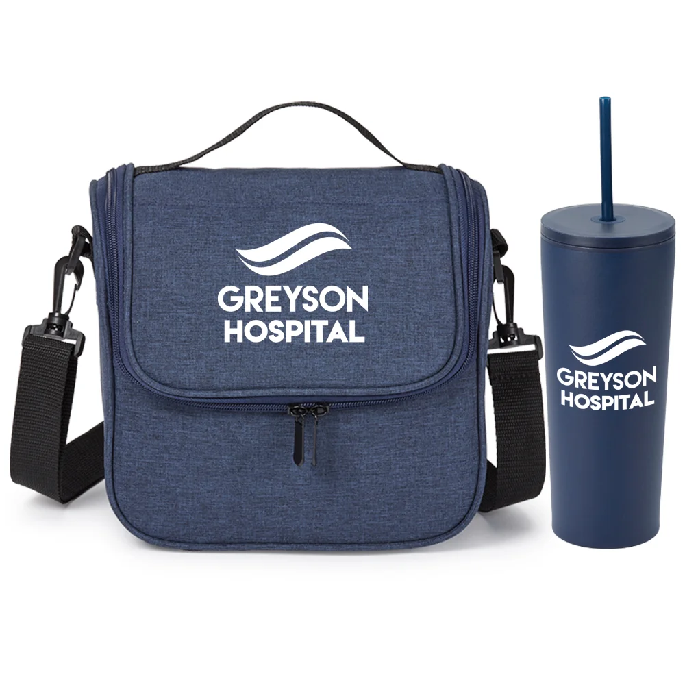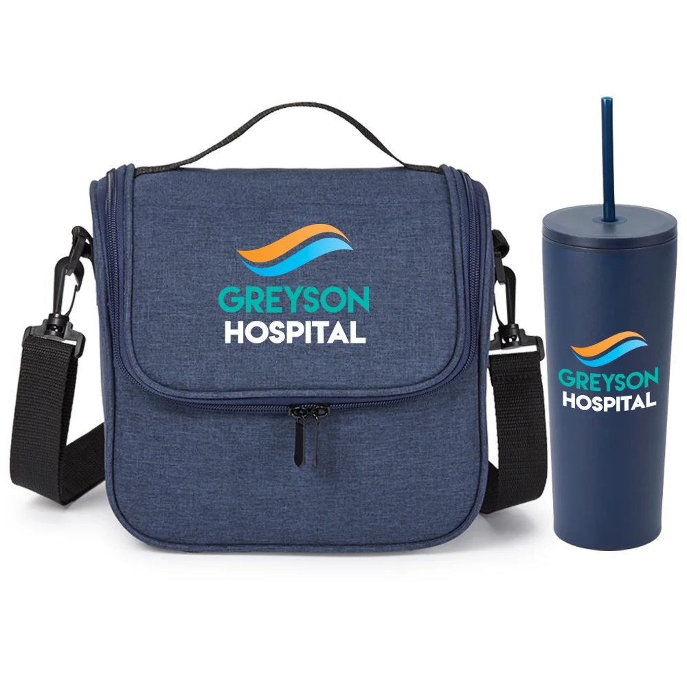 2-piece gift set includes: Portland Lunch/Cooler Bag & Sleek Stainless-Steel/Plastic Tumbler With Dual Lids 24 oz.
