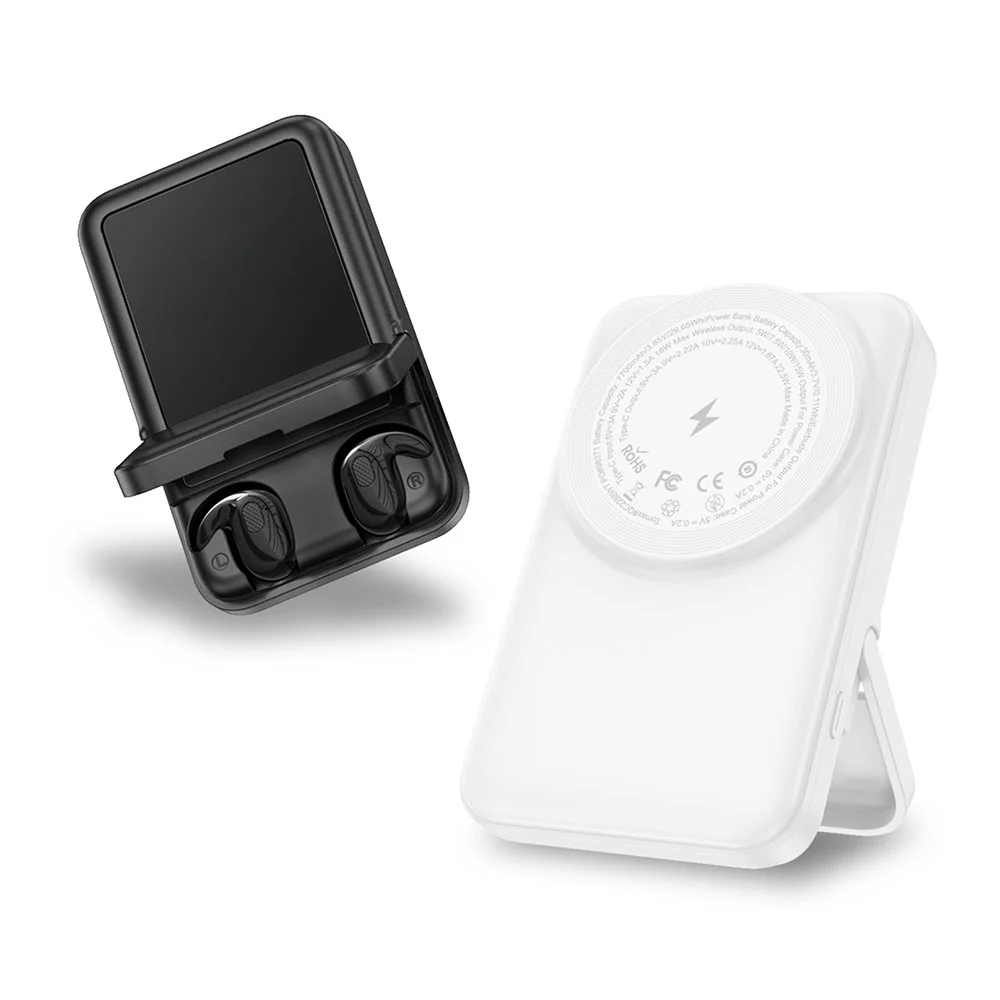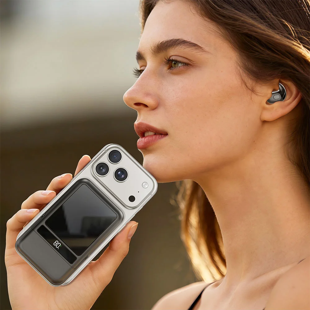 Delivering up to 22.5W output through its Type-C port and up to 15W via wireless charging, it keeps your devices powered quickly and efficiently, while the integrated folding stand doubles as a protective cover that reveals built-in storage for Bluetooth sleep-ergonomic earphones