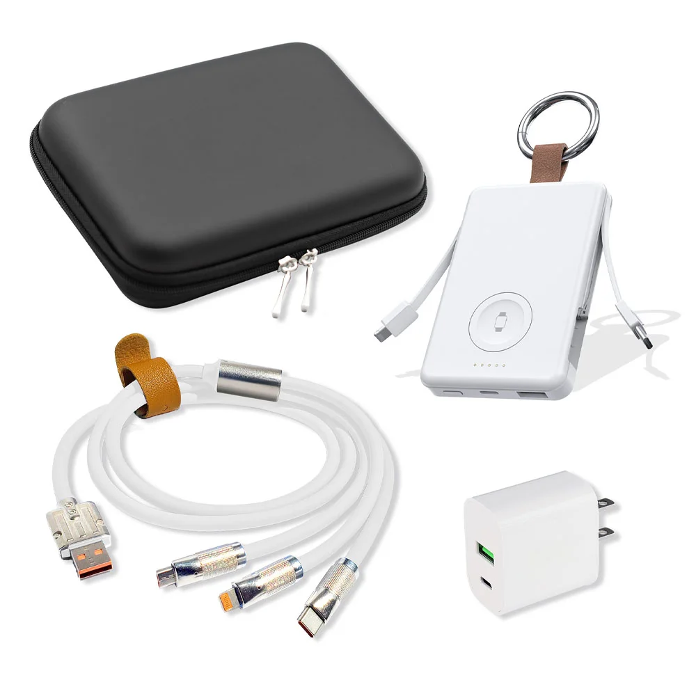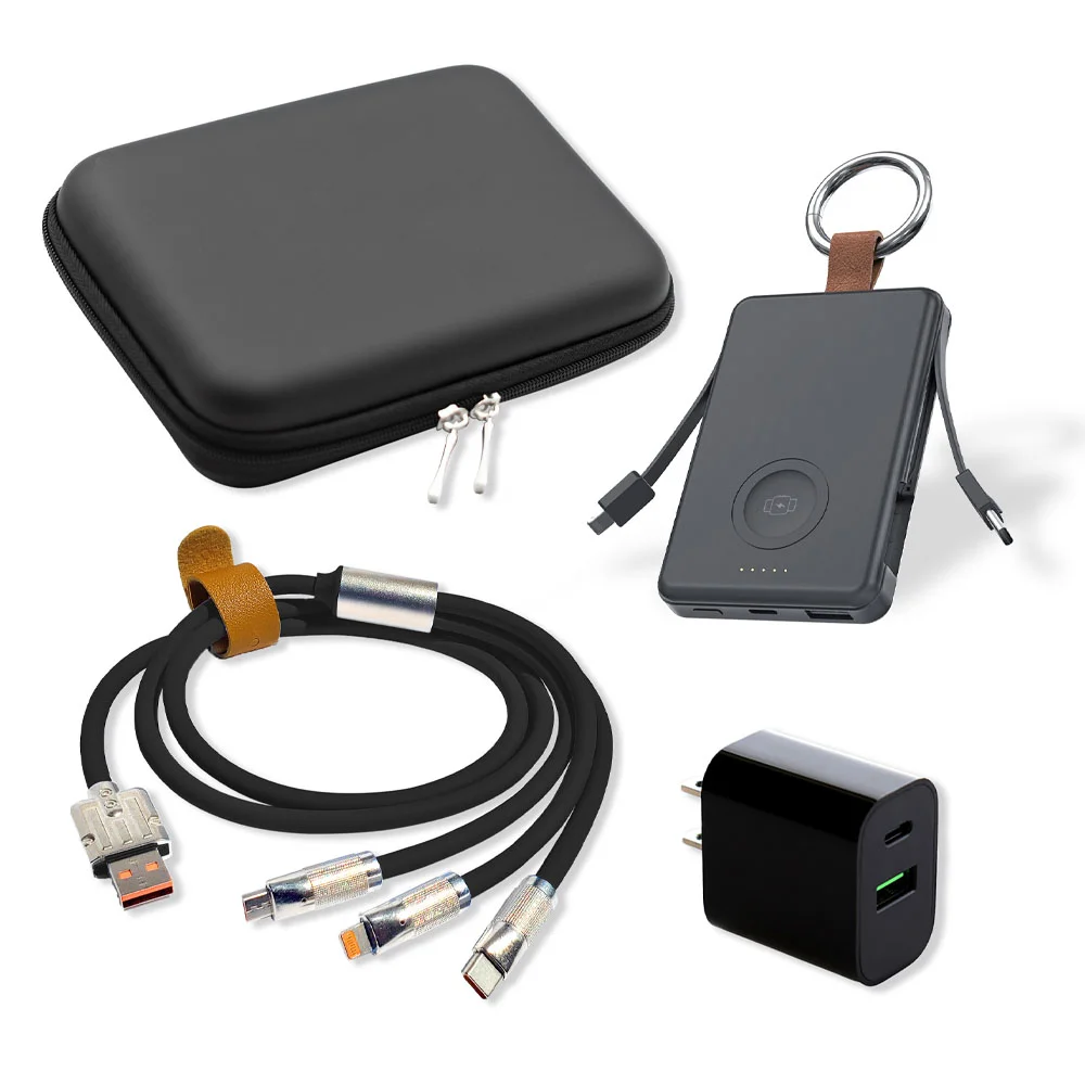 Plastic & EVA travel tech shell case with zipper includes 3 essentials: