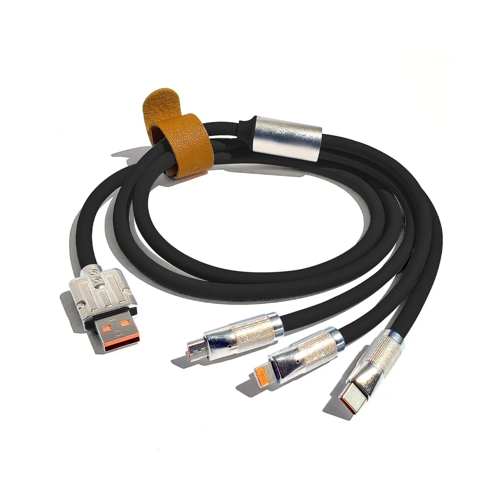 Heavy-Duty 3-in-1 Charging Cable: Lightning, Type-C, & Micro-USB charging tips for any phone; Soft and flexible yet resilient and strong material; Tangle free