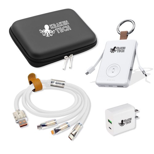 Power Bank: 1.5"H X 1.5"W, Adapter: 0.625"H X 1.125"W,, Charging Cable: 0.1875"H X 0.75"W, Organizer: 2"H X 2.5"H, Up To 2 Lines/Logo; 25 Characters Max Per Line