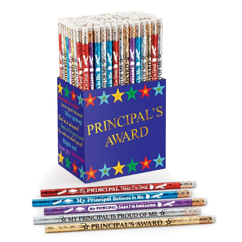 • Supply yourself with pencils bursting with color and displaying positive messages expressing the principal's pride and support