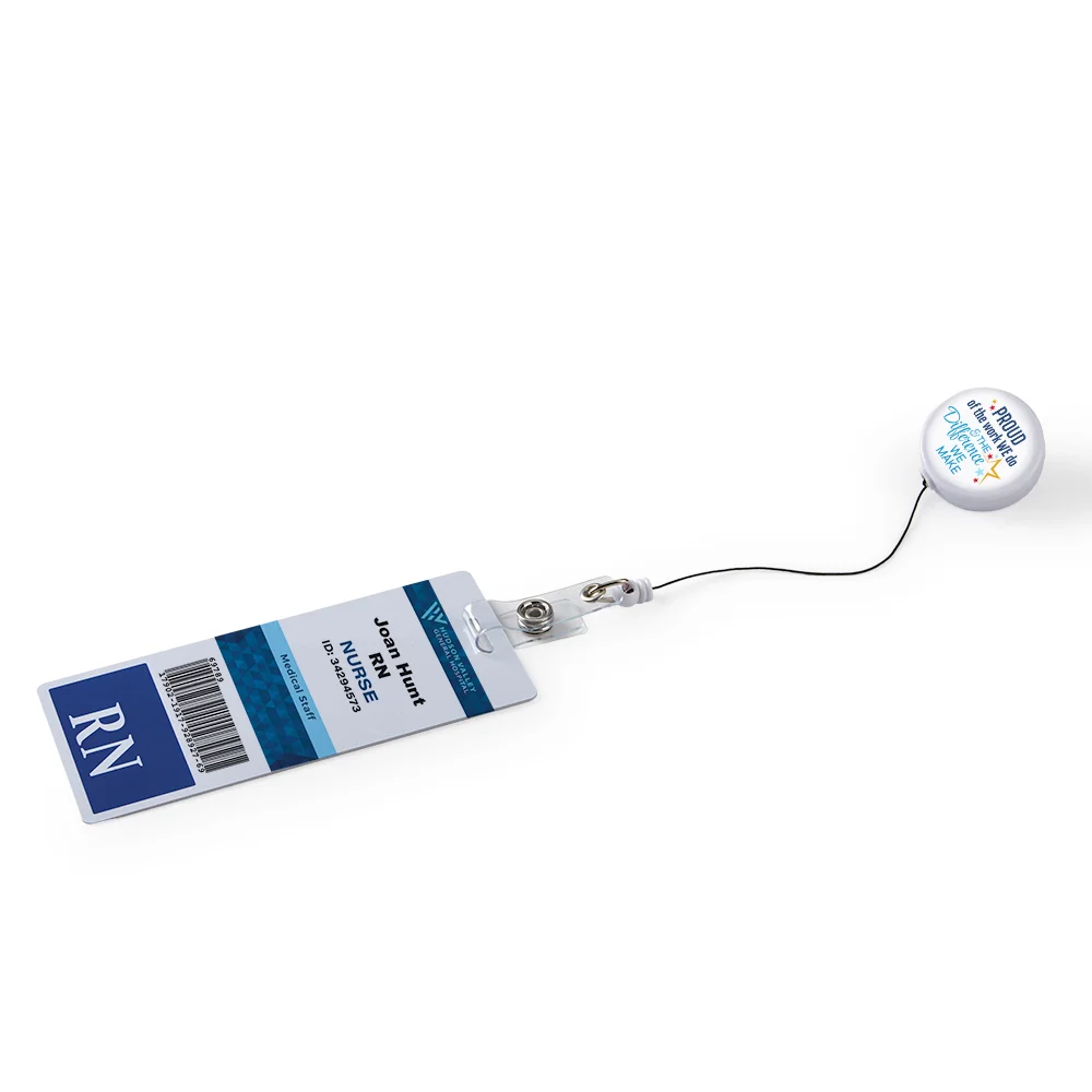 White plastic badge holder retracts automatically