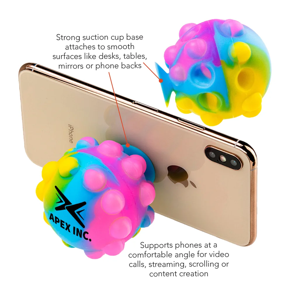 Phone stand and push pop fidget toy combo provides hands-free viewing and stress relief