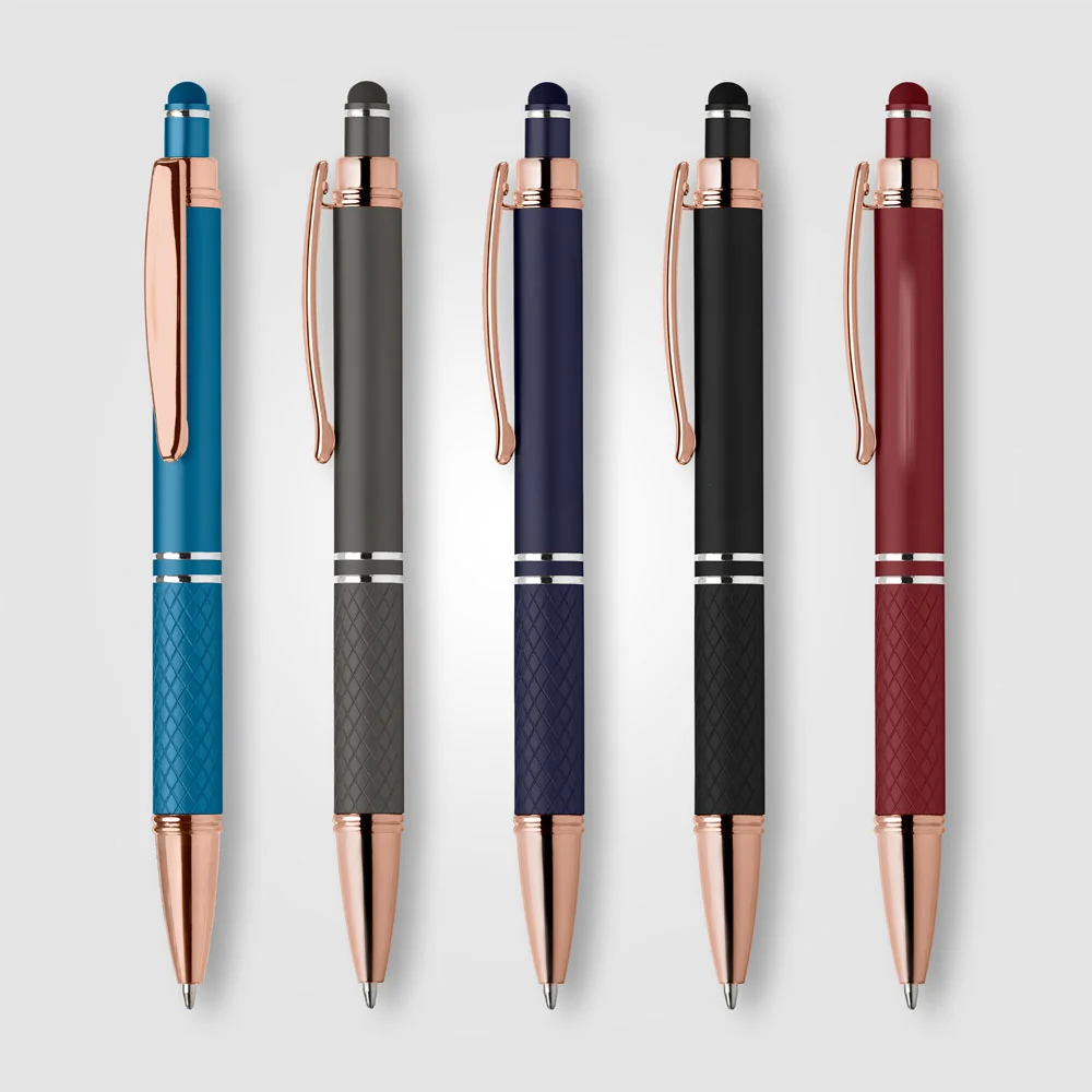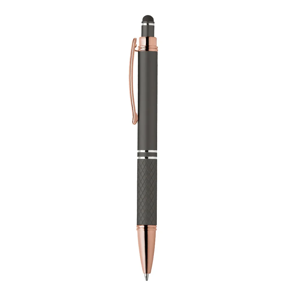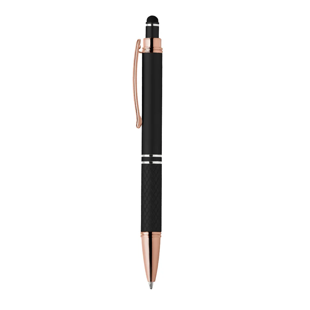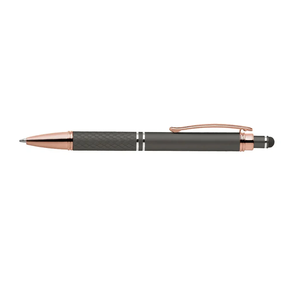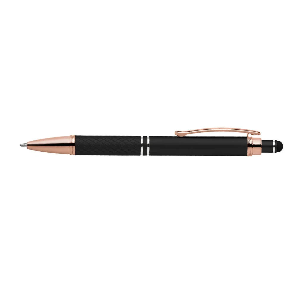 Quilted Grip Soft-Touch Rose-Gold Metal Stylus Pen - Full-Color Personalization Available