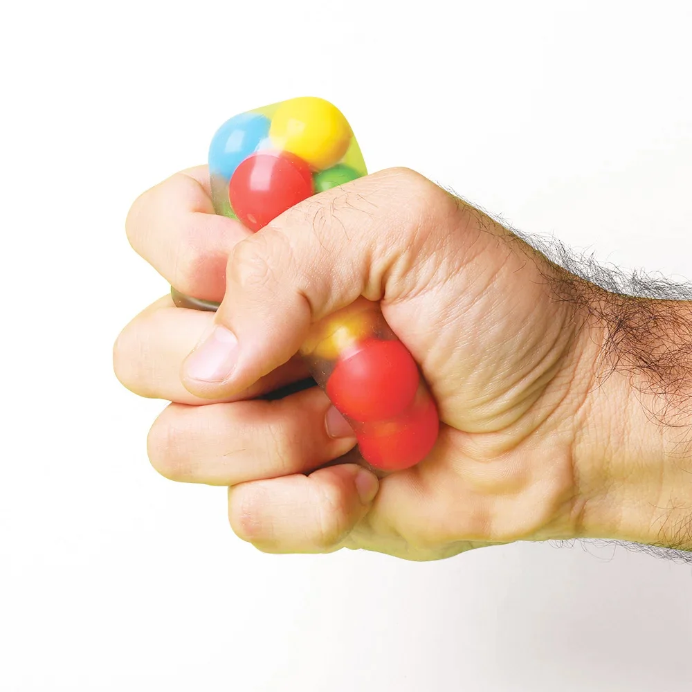 • Squeeze the stress ball! The large, soft, multi-colored balls inside create a dynamic, shifting sensation