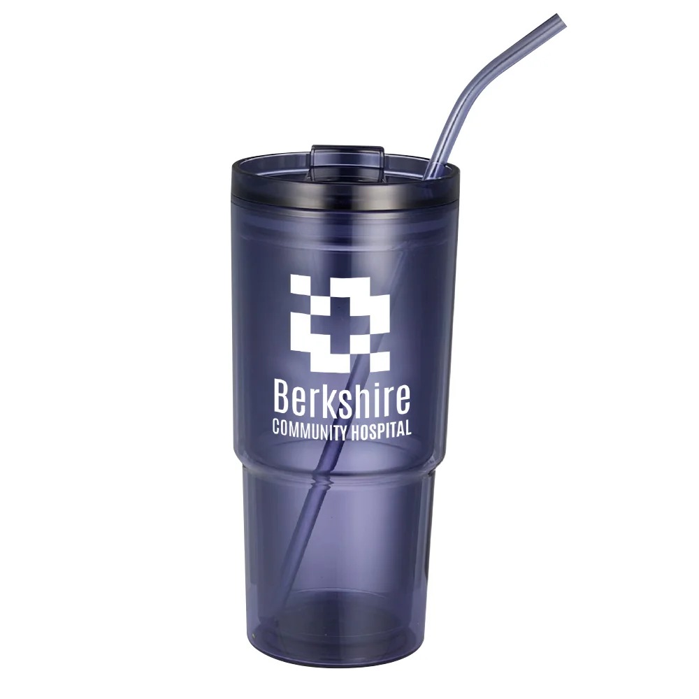 Recycled Acrylic Double-Wall Tumbler 24 oz. With Straw - One-Color Personalization Available