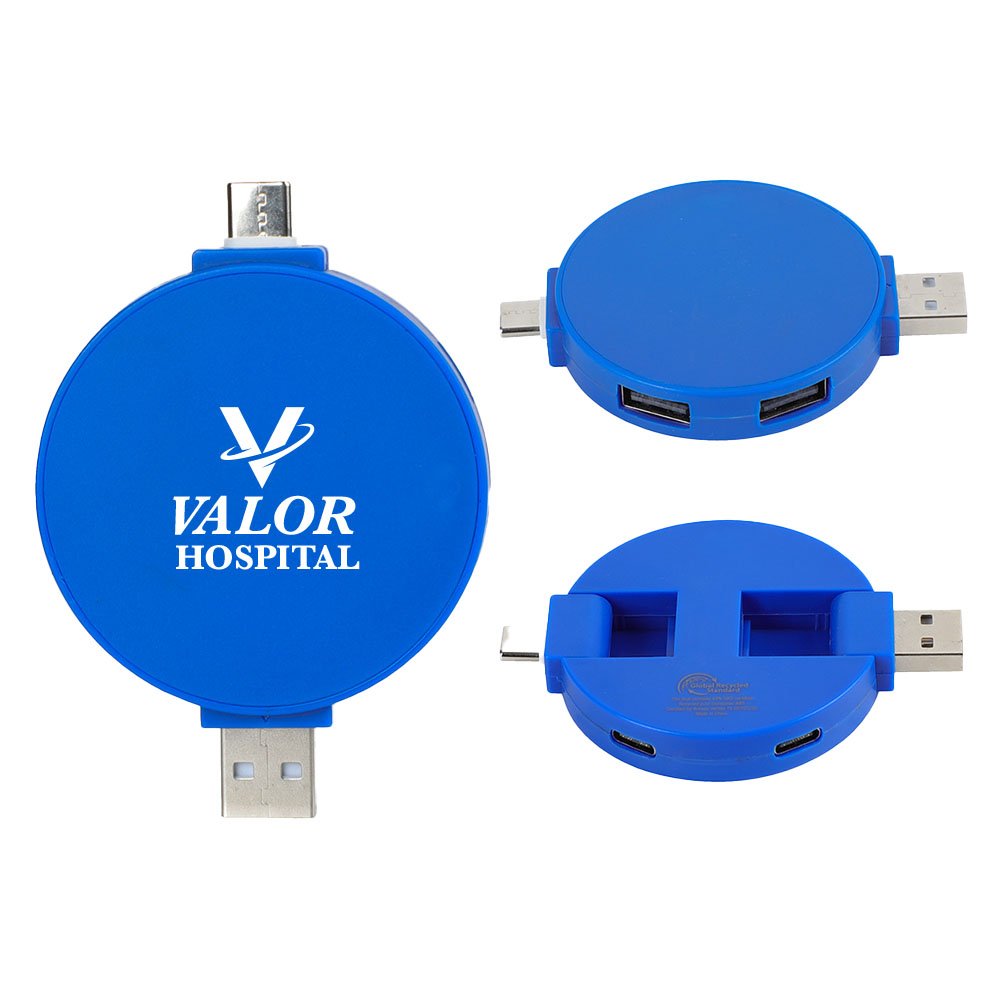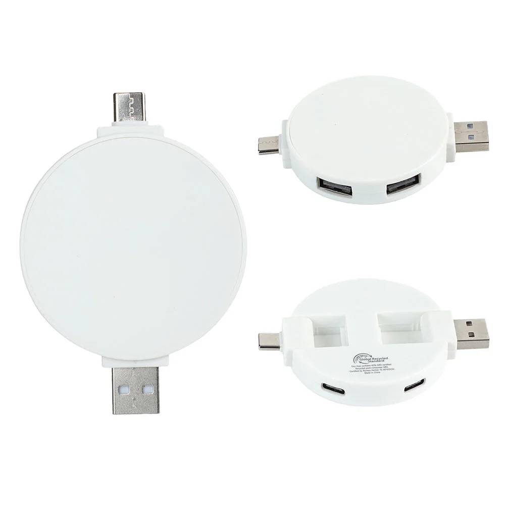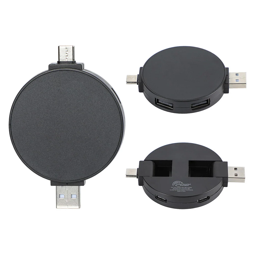 Recycled Quad 4-Port USB-C & USB-A Hub - Personalization Available
