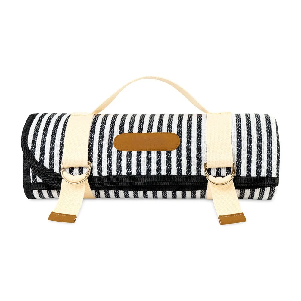 • Classic pinstripe picnic blanket with modern features that cater to anyone who enjoys outdoor activities