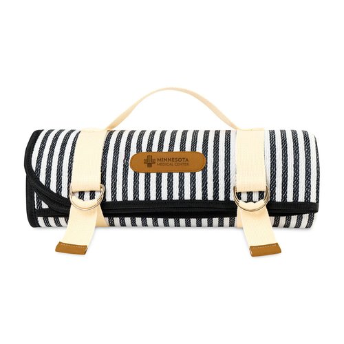 Recycled Striped Water-Resistant Picnic Roll-Up Blanket 60" x 50" - Laser-Engraved Personalization Available