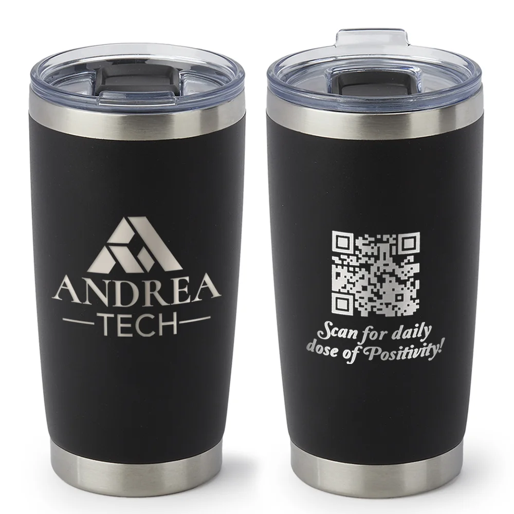 Personalized 20-oz. Tumbler: Features a QR code on the back that recipients can scan to reveal a fresh, uplifting quote every day, fueling positivity one sip at a time; Double-walled, quality 18/8 stainless steel; Vacuum insulated to keep drinks cold for 12 hours and hot for 8 hours; Durable, non-slip, sweat-free, powder-coated finish; Spill/splash-resistant, slide-lock lid with slot for straw (note: straw not included); Tapered base fits in most cup holders; Eco friendly; Reusable; BPA free; Note: Hand wash only