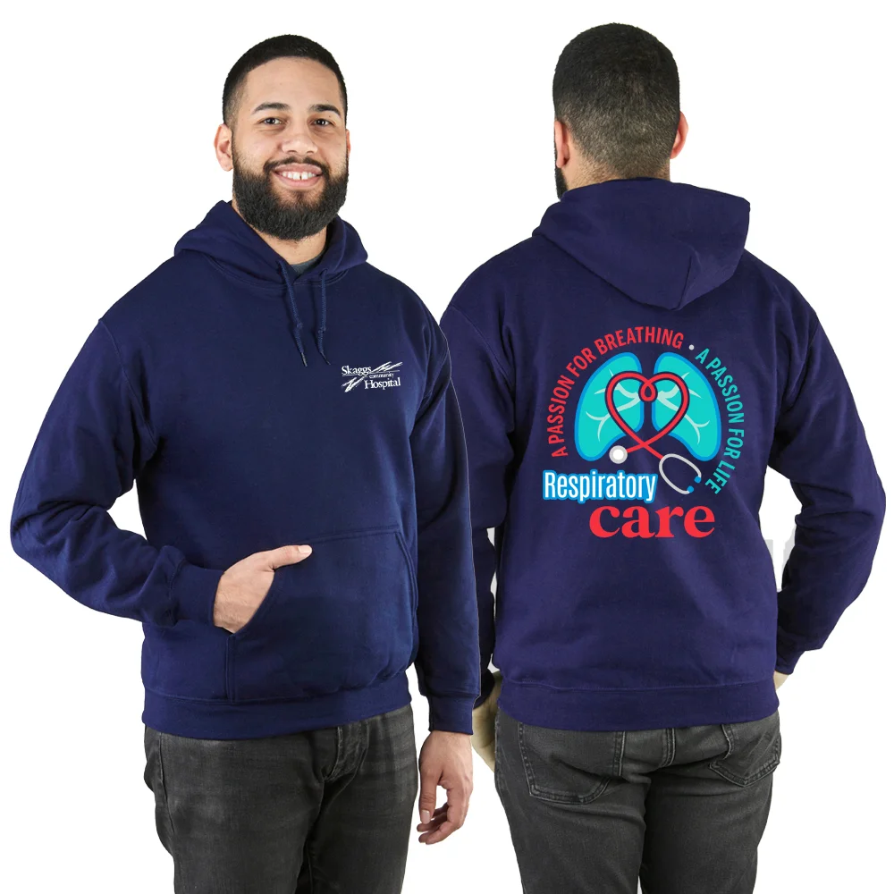 Respiratory Therapists: The World Breathes Easier With Us Unisex 2-Sided Long-Sleeved T-Shirt - Silkscreened Personalization Available