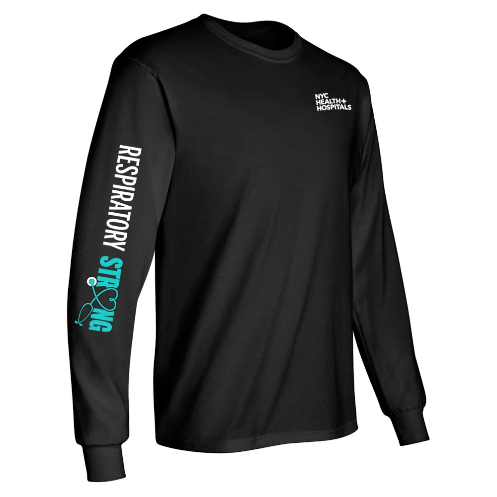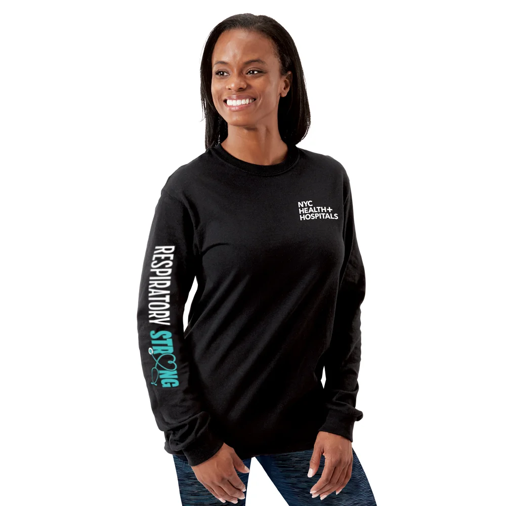 Respiratory Therapists: The World Breathes Easier With Us Unisex 2-Sided Long-Sleeved T-Shirt - Silkscreened Personalization Available