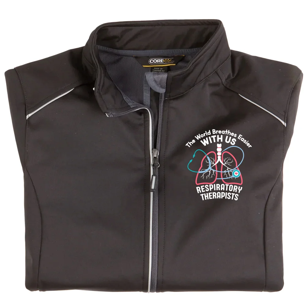 Respiratory Therapists: The World Breathes Easier With Us Unisex 2-Sided Short-Sleeved T-Shirt - Silkscreened Personalization Available