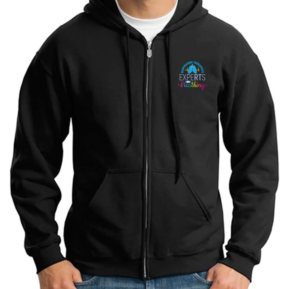 Respiratory Therapists: The World Breathes Easier With Us Unisex 2-Sided Long-Sleeved T-Shirt - Silkscreened Personalization Available