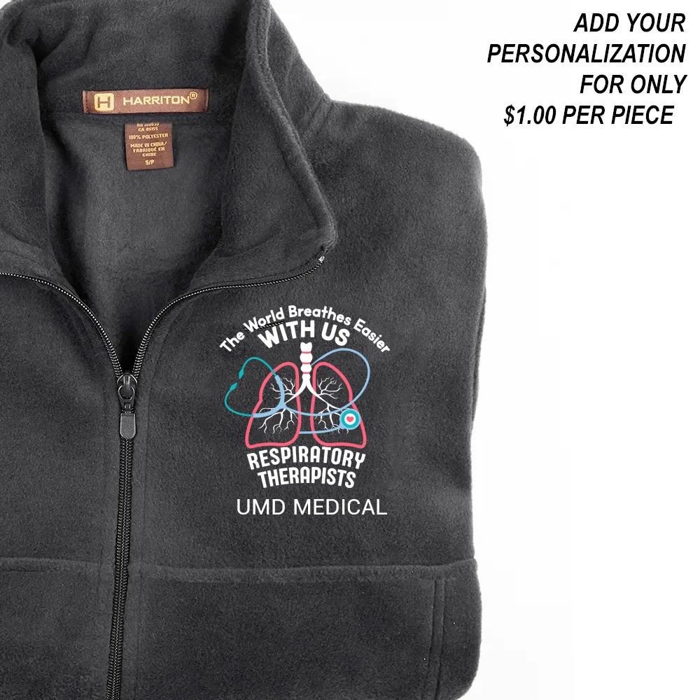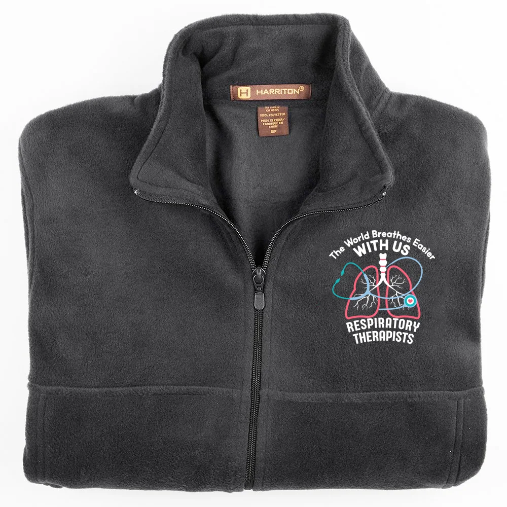 Respiratory Therapists: The World Breathes Easier With Us Unisex 2-Sided Long-Sleeved T-Shirt - Silkscreened Personalization Available