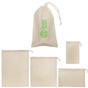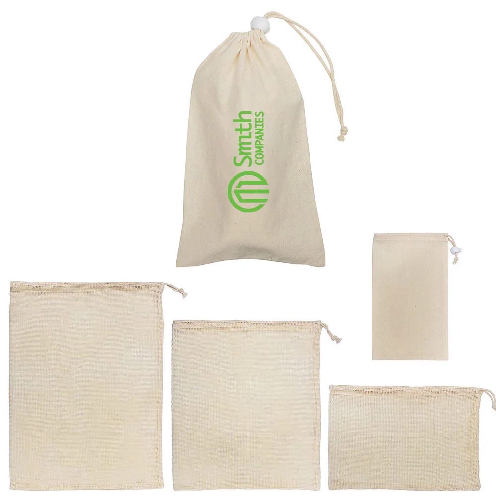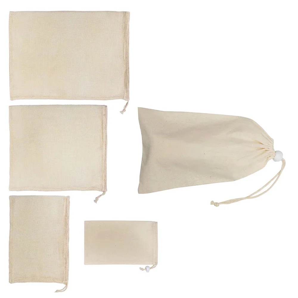 • Set includes a small, medium, and large cotton mesh produce bag in a cotton drawstring carrying pouch