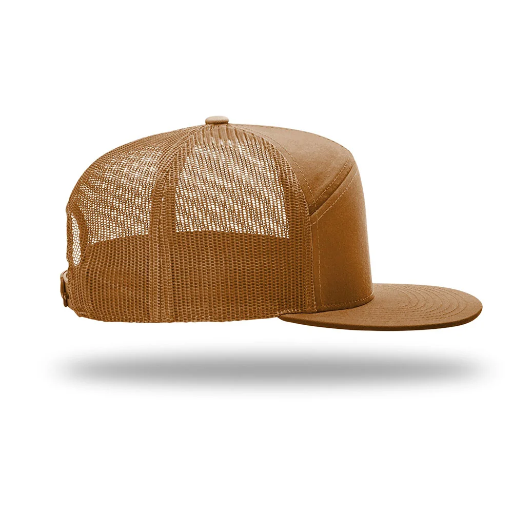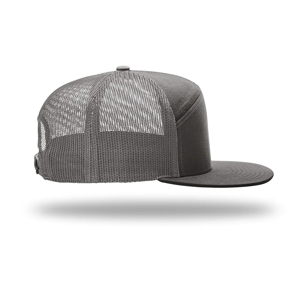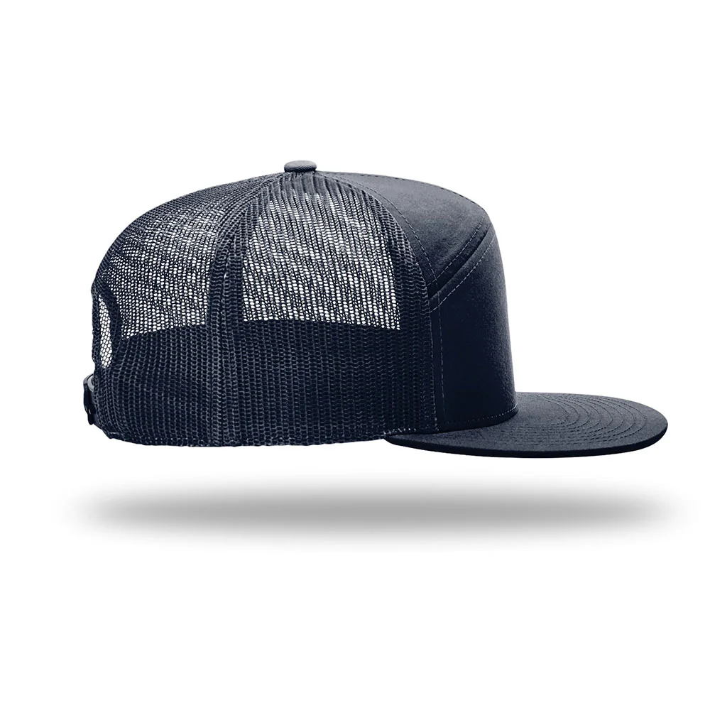 • A contemporary trucker with a flat bill and seamless front.