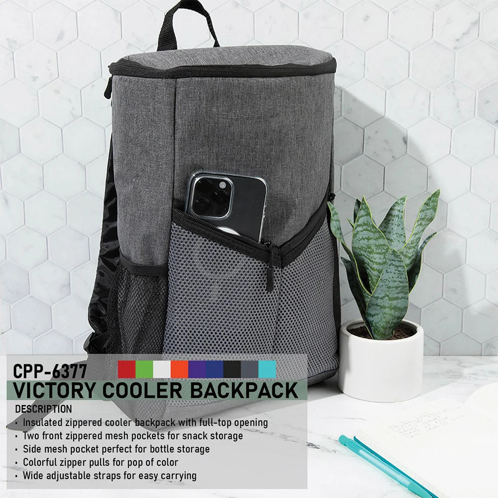 • Insulated zippered cooler backpack with full-top opening