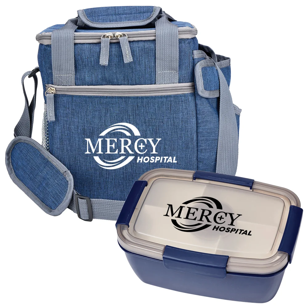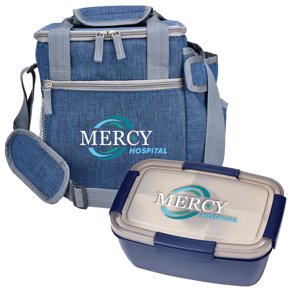 2-piece gift set includes: Riverside Deluxe Lunch/Cooler Bag With 30-/40-oz. Tumbler Pocket & Locking Stacker Food Container 68 oz.