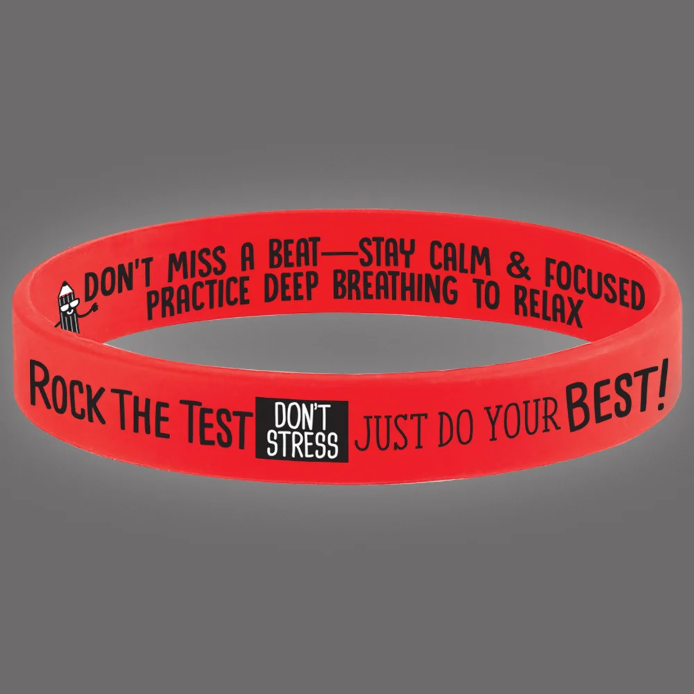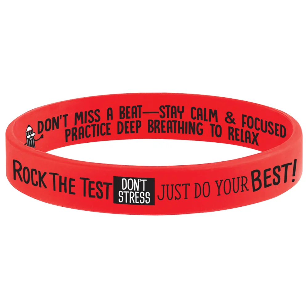 • Outside of band features our exclusive, rockin' design: Rock the Test: Don't Stress; Just Do Your Best!