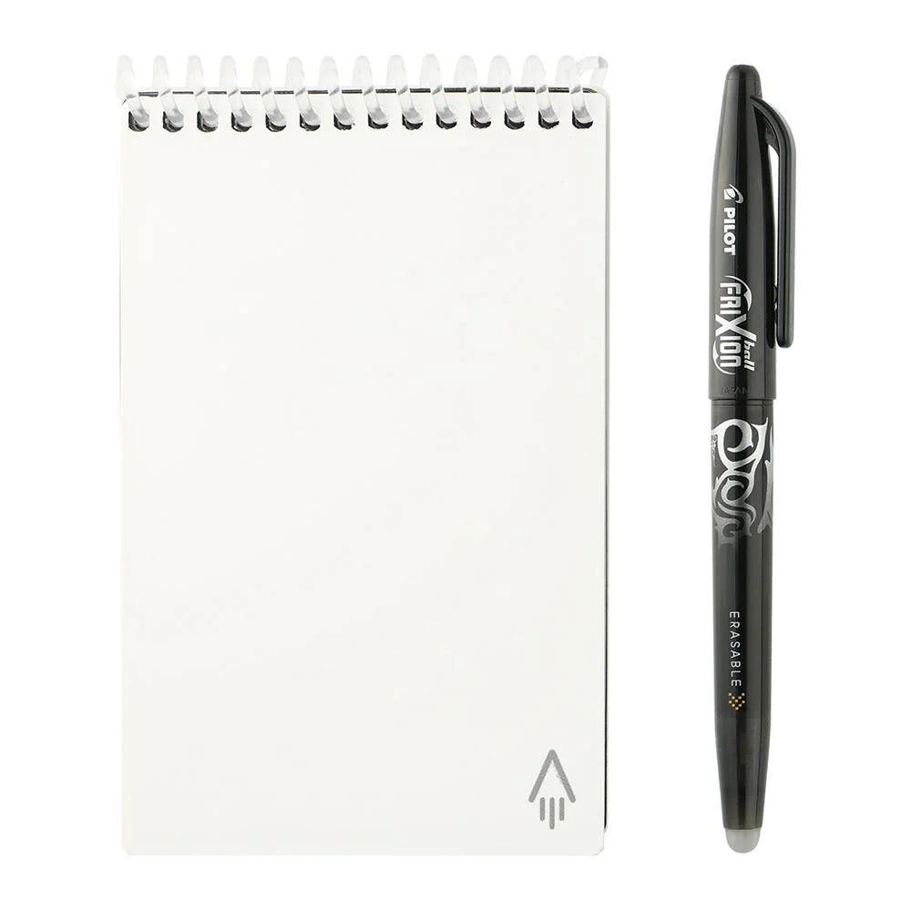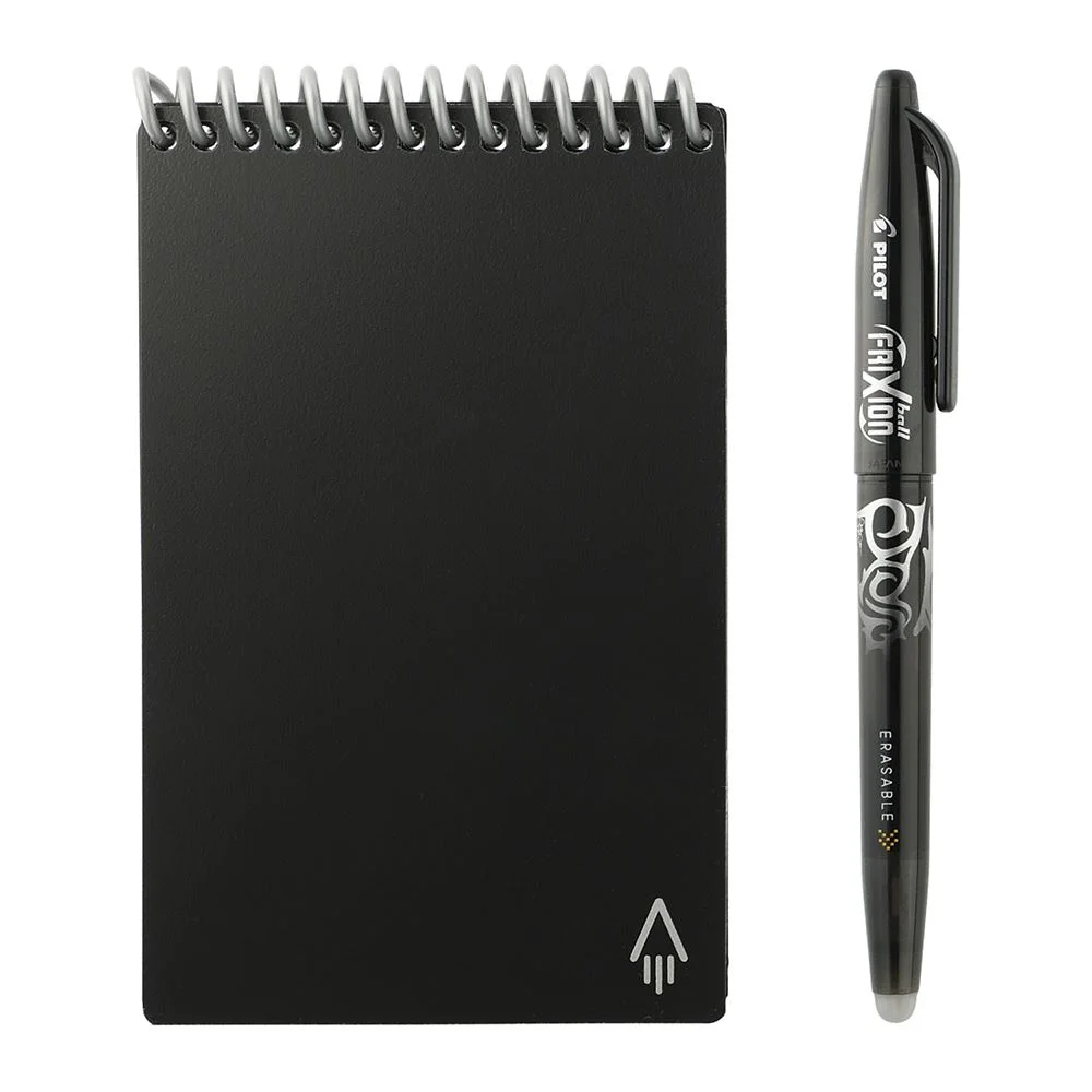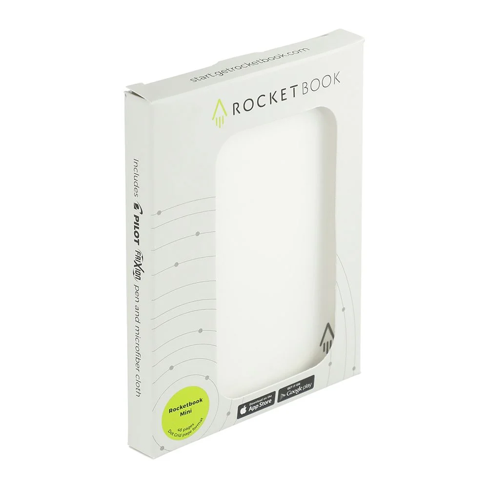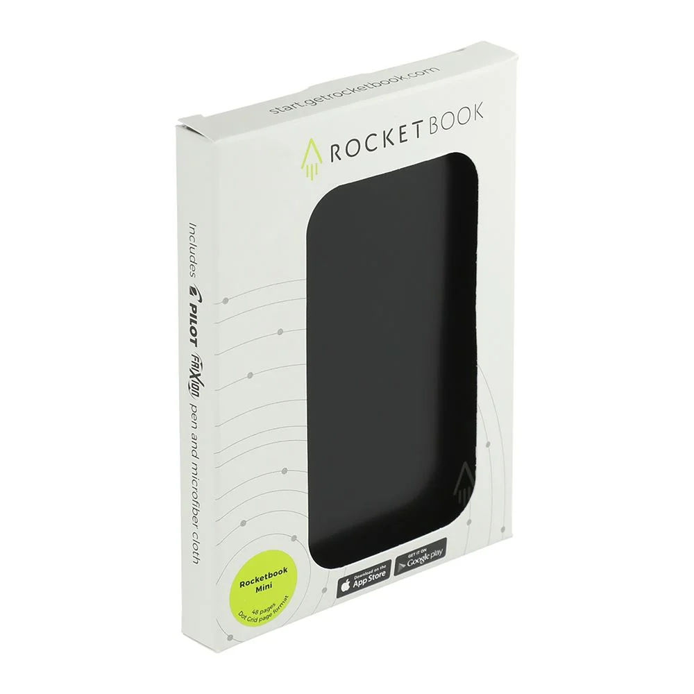 Rocketbook® Mini Notebook: Designed for every classroom, office, and personal mission; Hard polypropylene cover; 48 pages of synthetic dotted paper allows you to write smoothly with a Pilot® Frixion pen; Magically wipes clean with a damp cloth to reuse again and again; Eco-friendly alternative to regular paper; Use the Rocketbook app to save your notes to your favorite cloud service for proper organization