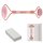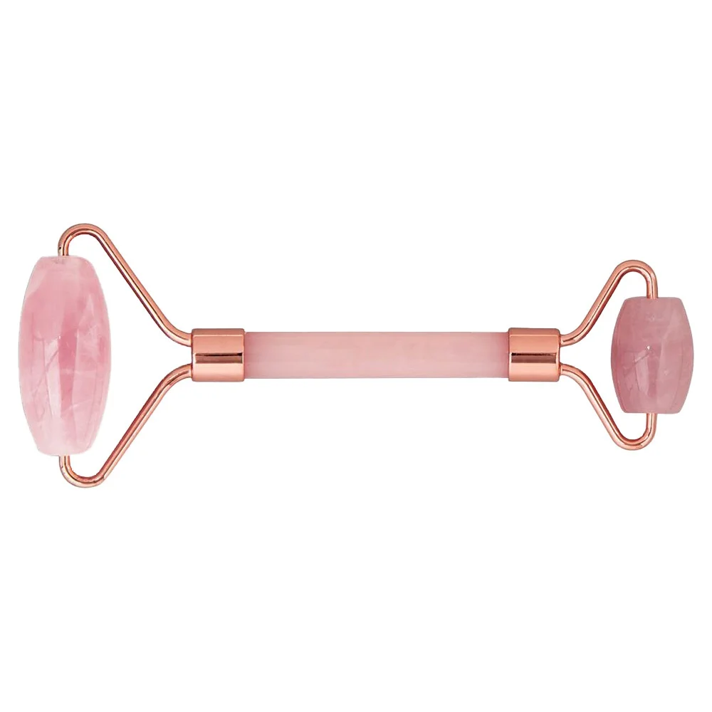 Made of rose quartz crystal and featuring rose gold hardware, it has two sides: the larger stone is for use on the neck, cheeks, and forehead, and the smaller stone is for use on delicate areas such as eyes, nose, and lips