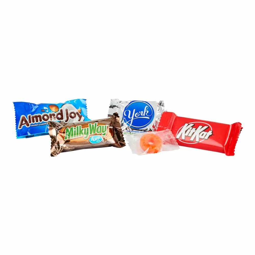 • Snack Kit includes: York® Peppermint Pattie, Mini Almond Joy®, Life Saver®, Kit Kat®, & Mini Milky Way®