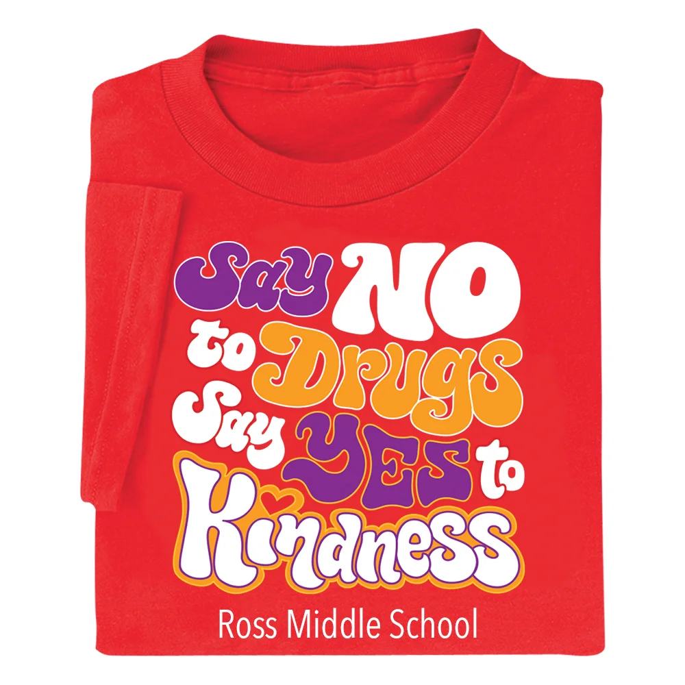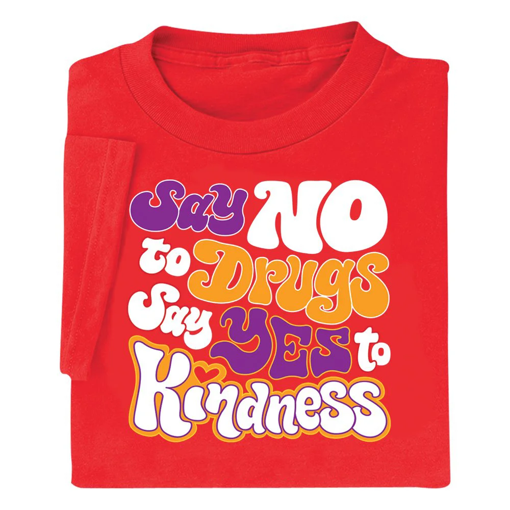 Say No to Drugs; Say Yes to Kindness Adult Short-Sleeved T-Shirt - Silkscreened Personalization Available