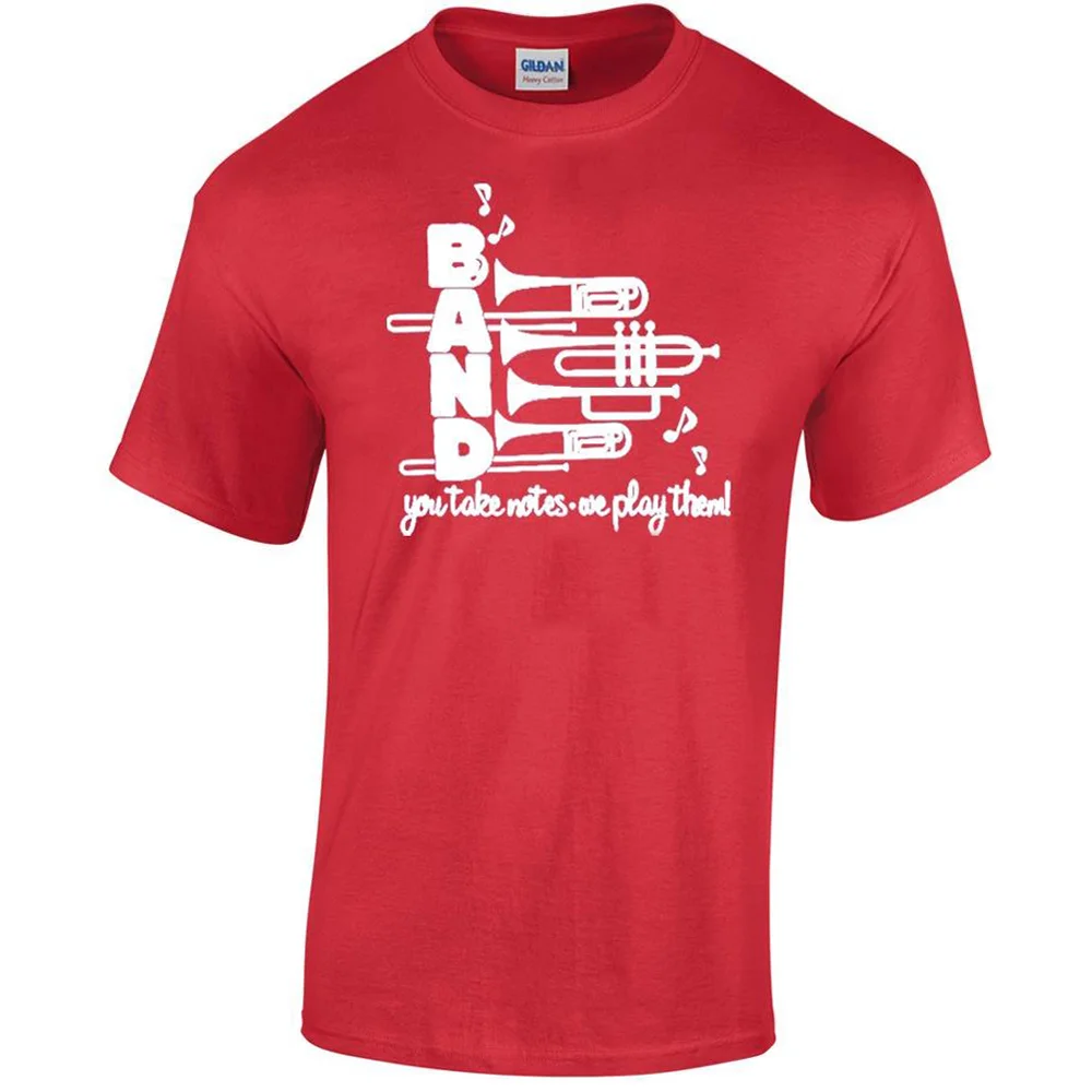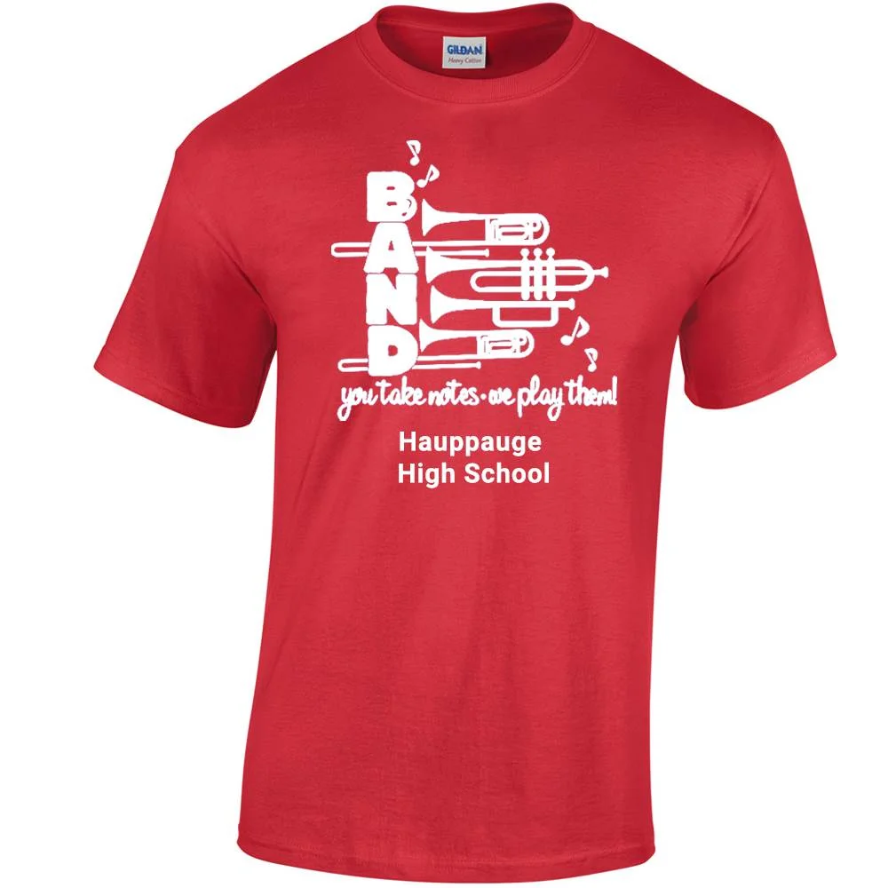 Choose one of our four exclusive stock designs in 1-color: Eat, Sleep, Band; Living The Band Life; I'm Not With The Band, I'm In The Band; Band: You Take Notes, We Play Them!