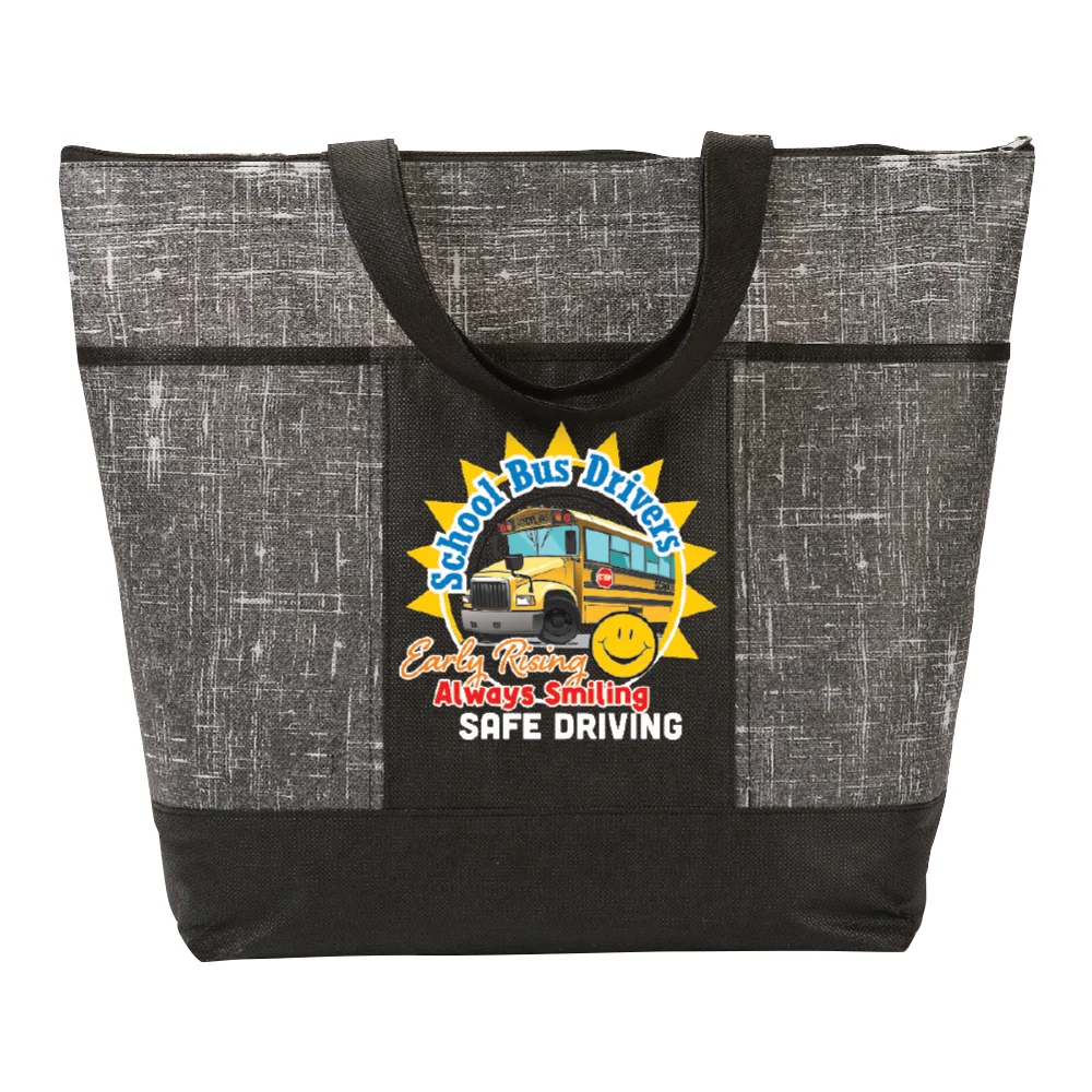 School Bus Drivers: Early Rising, Always Smiling, Safe Driving Malibu Non-Woven Zippered Tote Bag