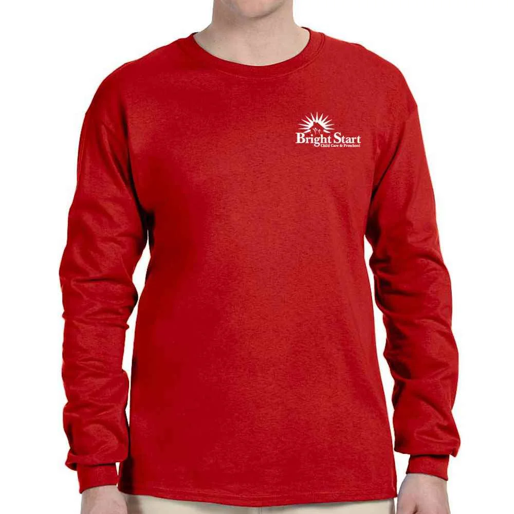 • Unisex styling; crewneck, long sleeve t-shirt in red