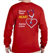 • Features our exclusive Show Your Heart Some Love awareness design on back AND your personalization on front upper left chest