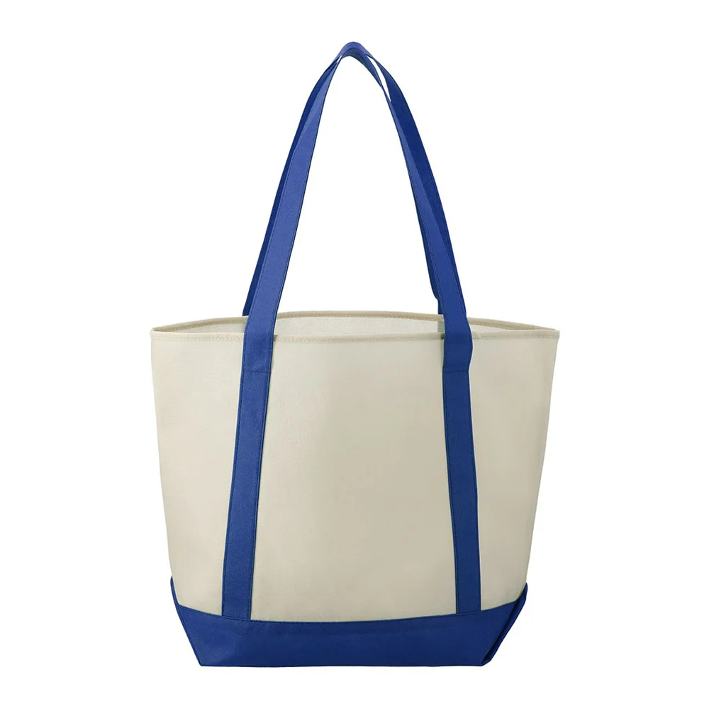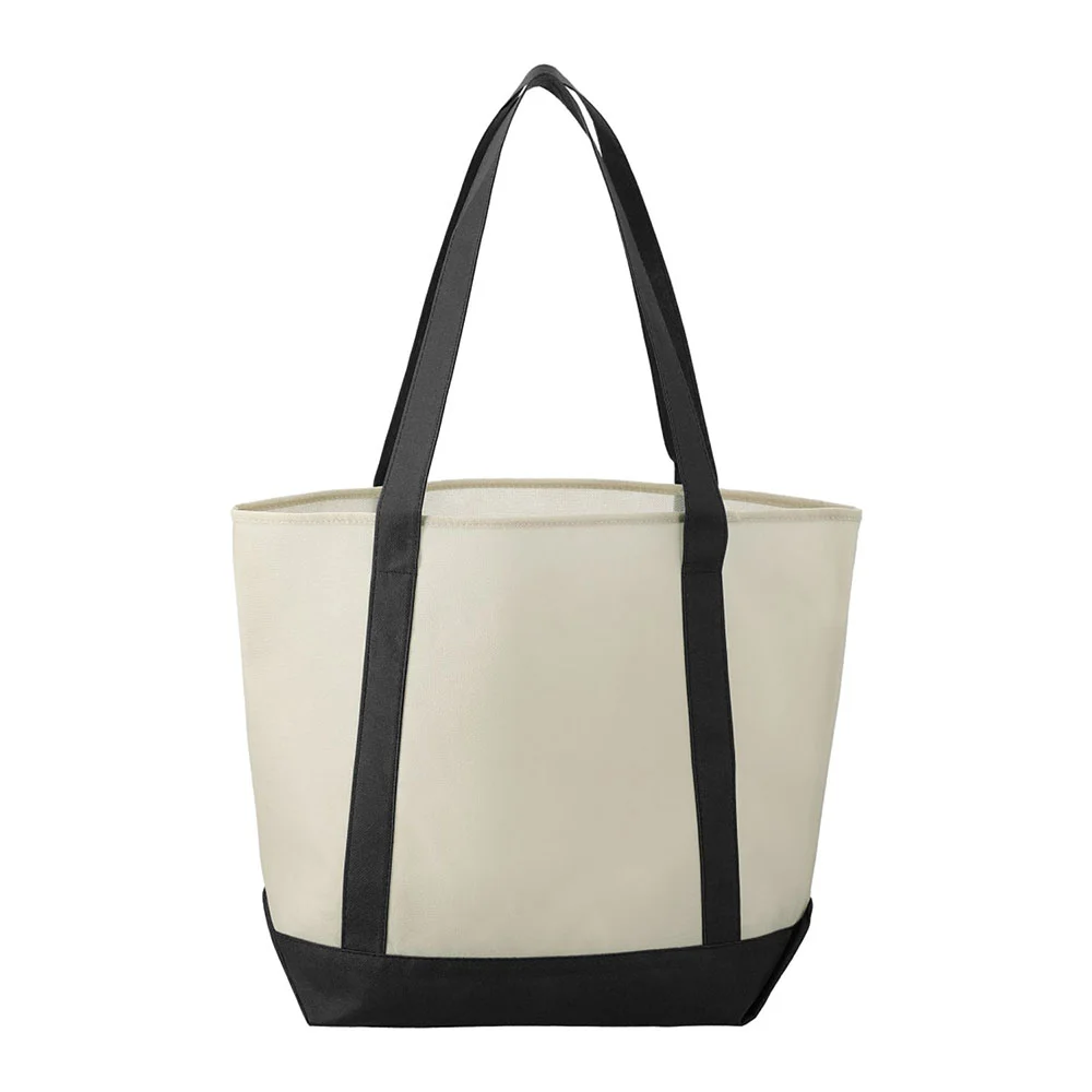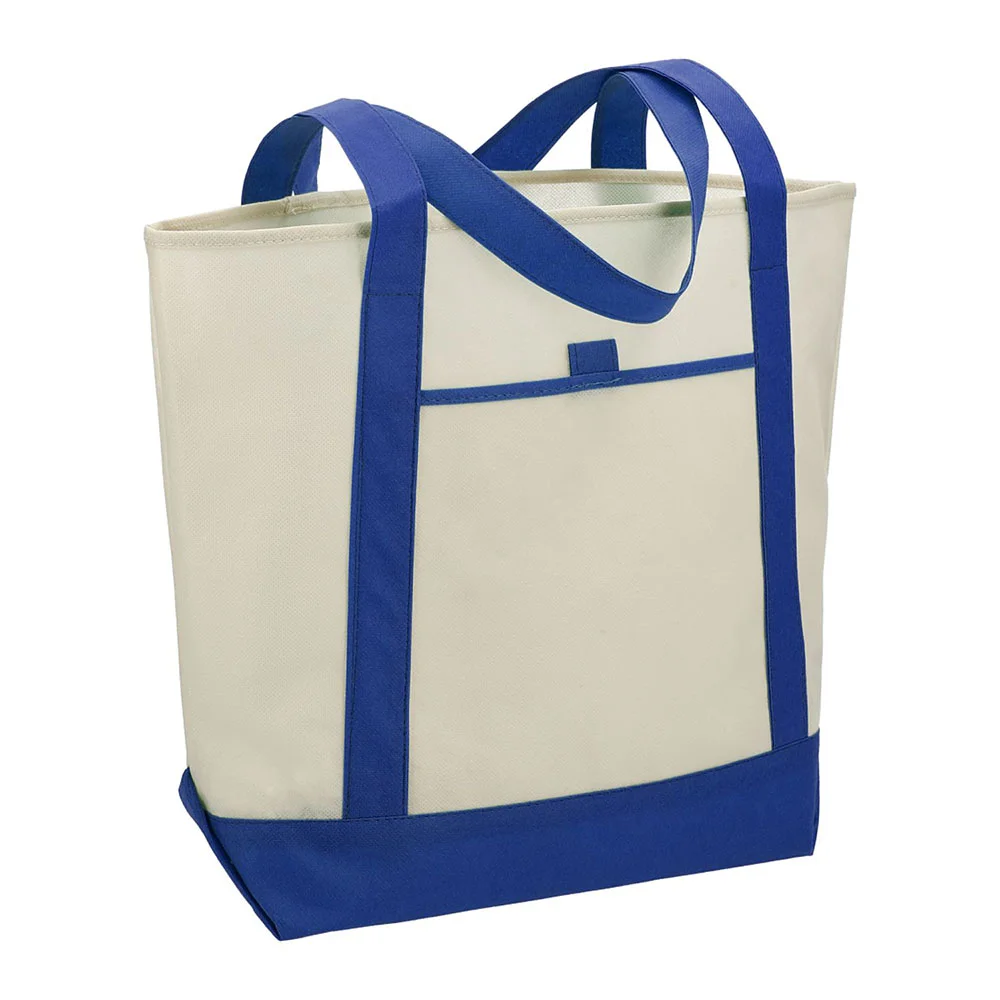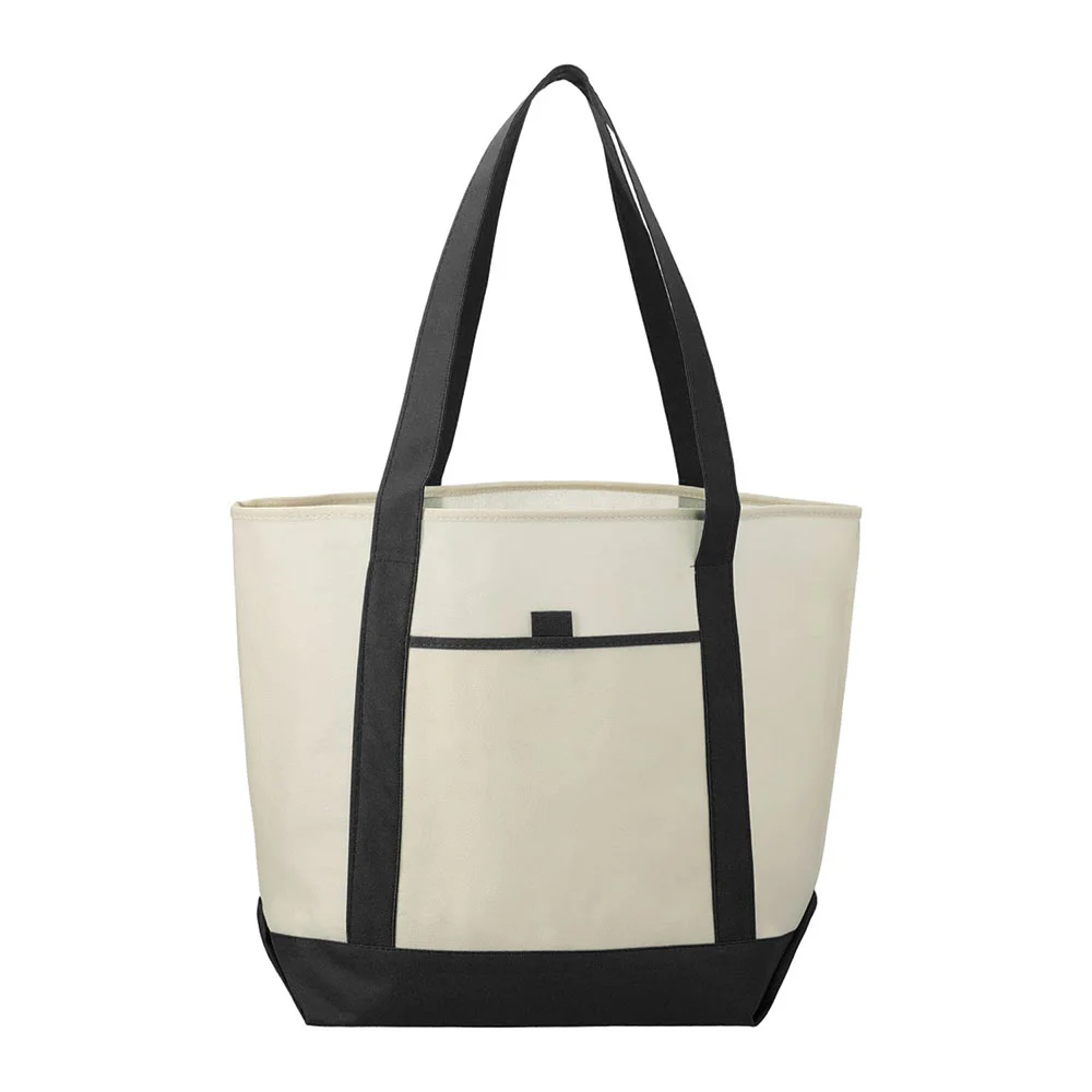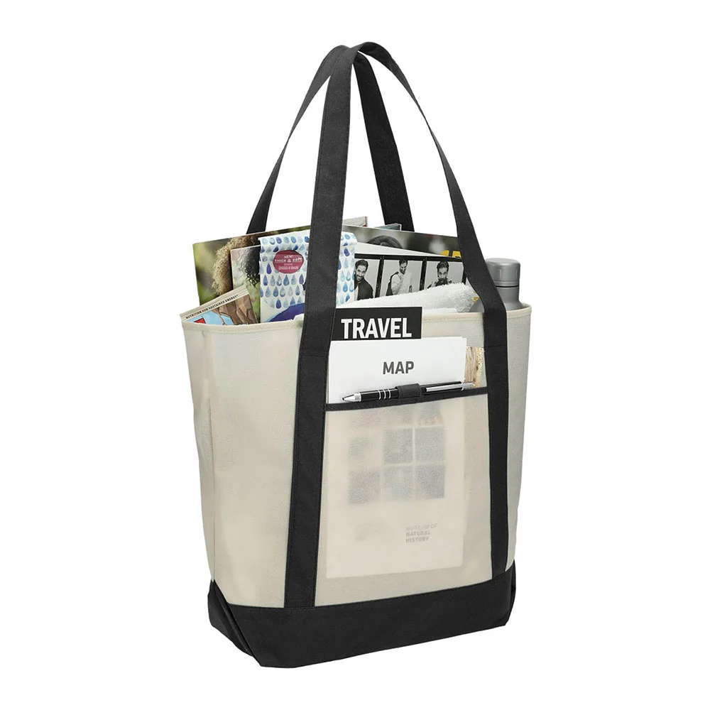 It features an open main compartment for storing your essentials, a front pocket with a built-in pen loop, and double 24" handles that make the bag easy to carry