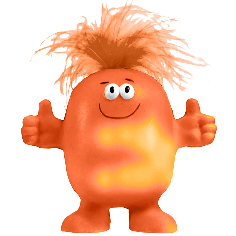 • Dude has a puff of hair, thumbs up, and a smile to help recipients beat the stress