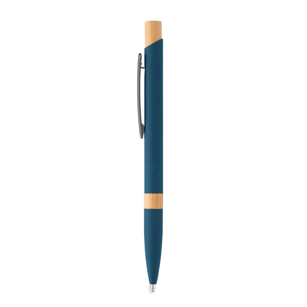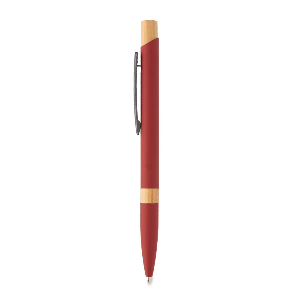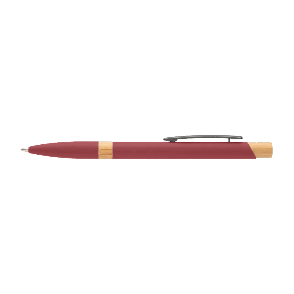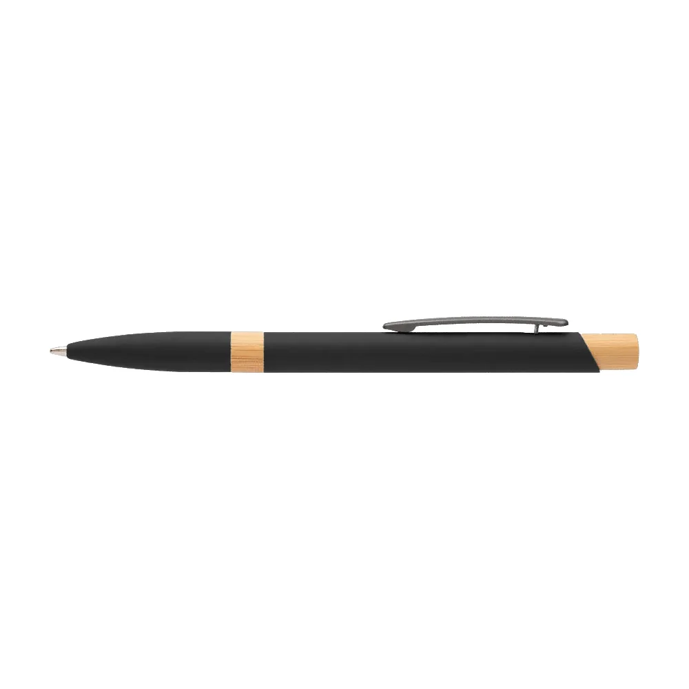 Retractable ballpoint pen with a sleek recycled-aluminum barrel and rubber finish for added comfort
