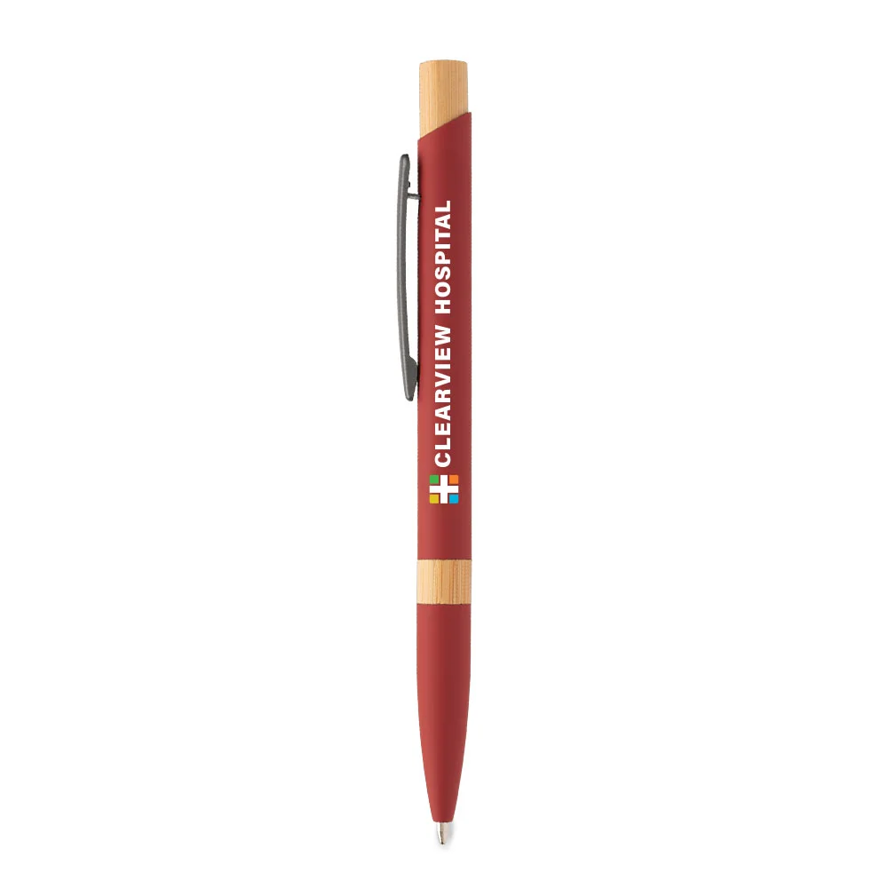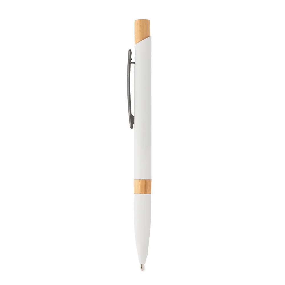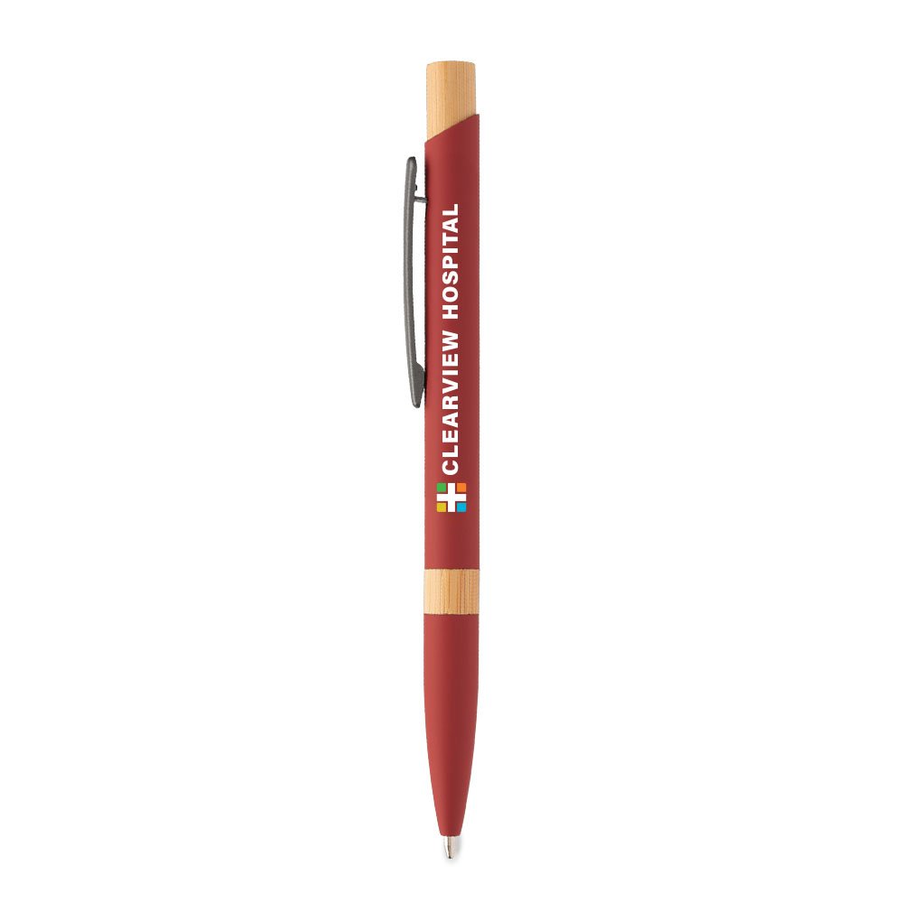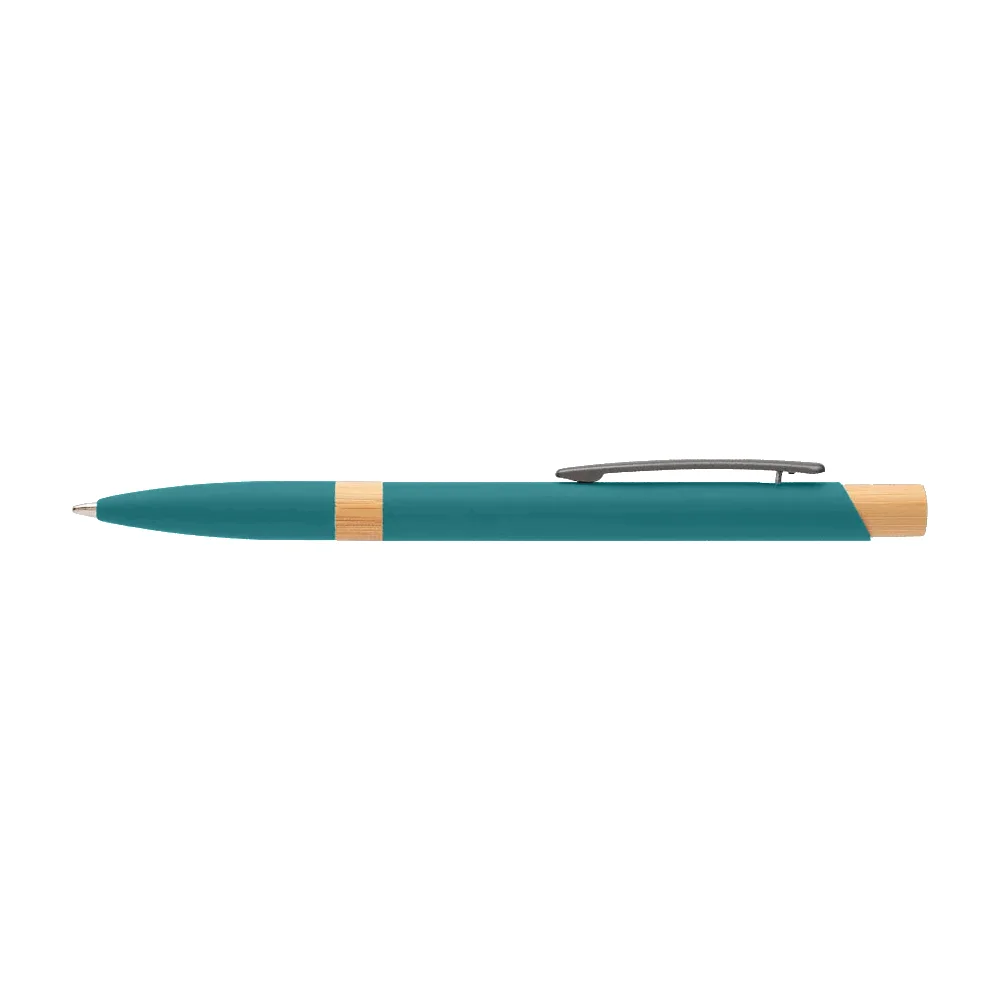 Retractable ballpoint pen with a sleek recycled-aluminum barrel and rubber finish for added comfort