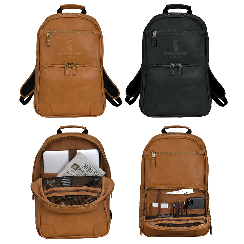This stylish and durable PU leather backpacks will turn heads whether at a meeting or taking a class It features laptop compartment and multiple pockets for extra storage