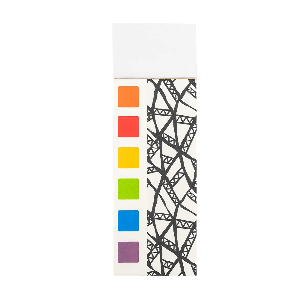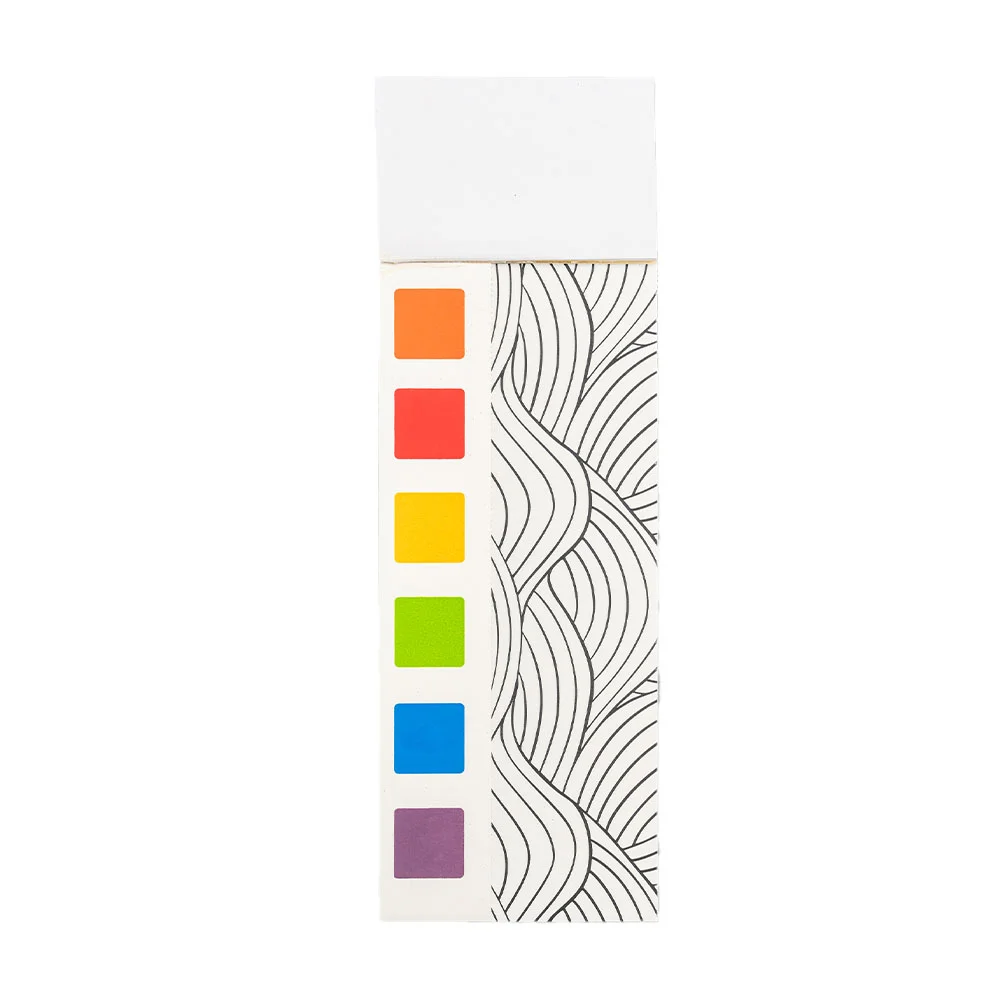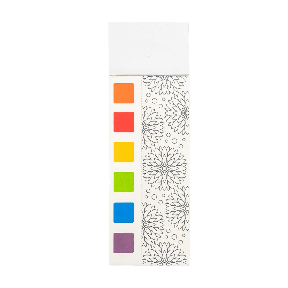 A built-in brush is tucked neatly inside the sturdy cardboard back cover, offering a mess-free, portable painting experience