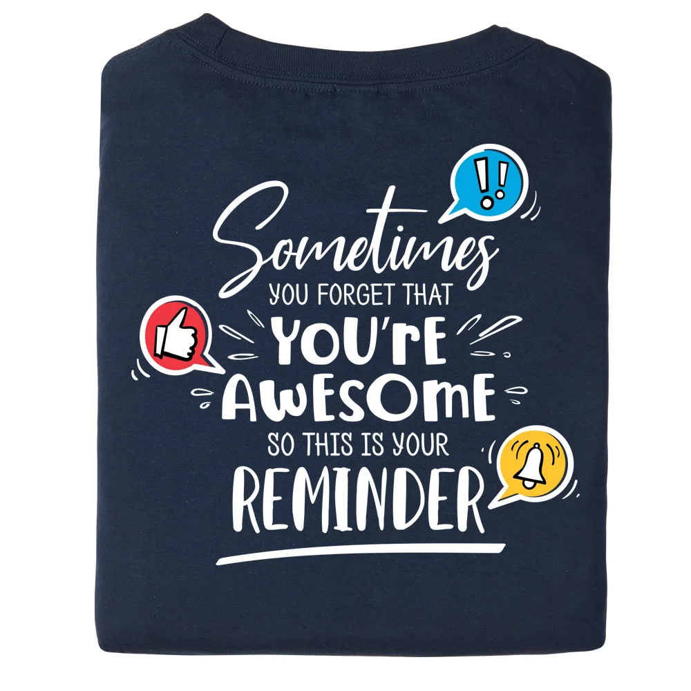 Sometimes You Forget That You're Awesome Unisex 2-Sided Short-Sleeved T-Shirt - Silkscreened Personalization Available