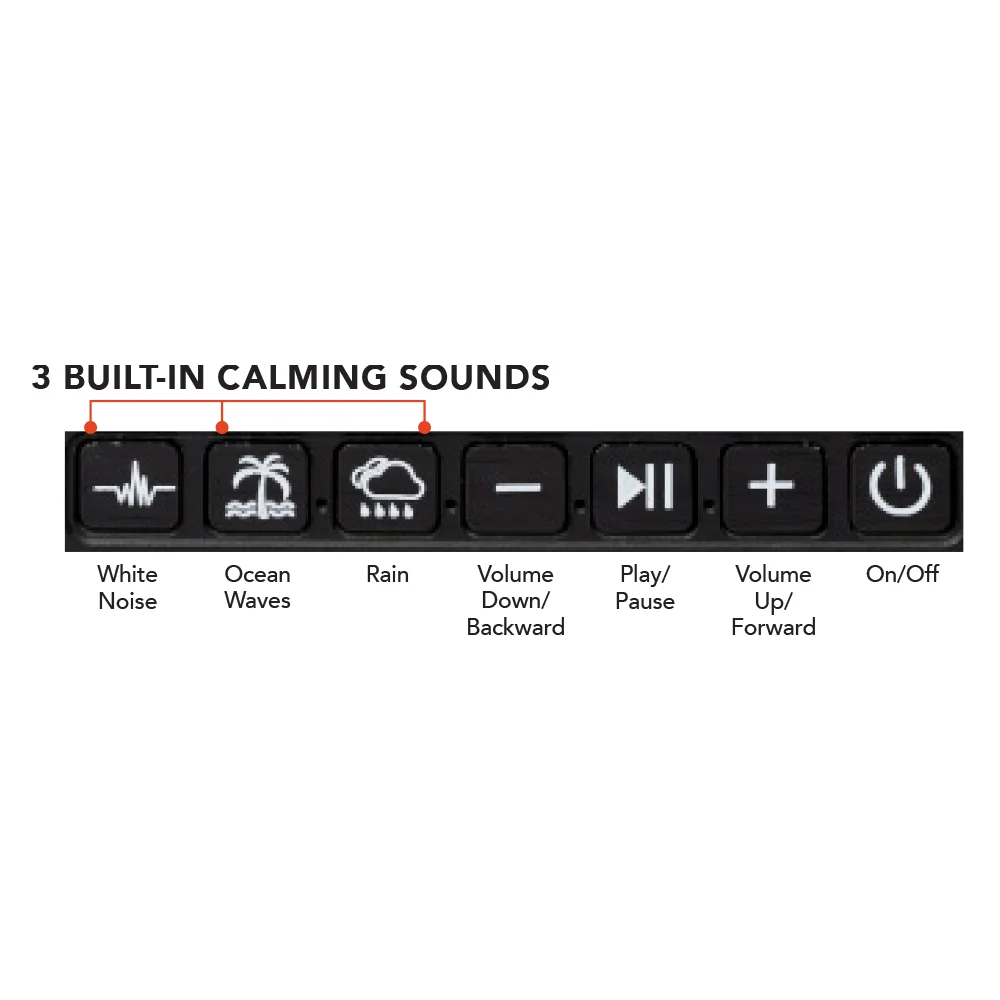 Sounder sleep: Choice of 3 soothing sounds, including White Noise, Ocean Waves, and Rain