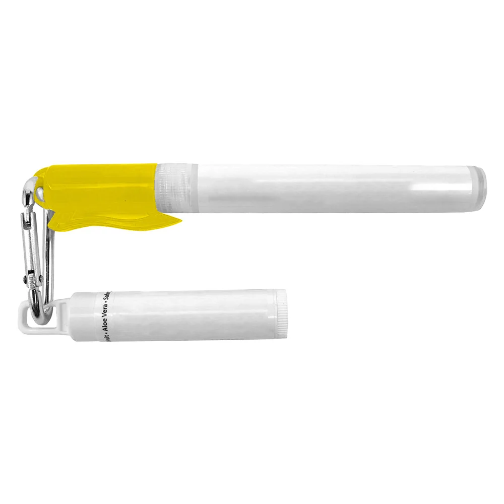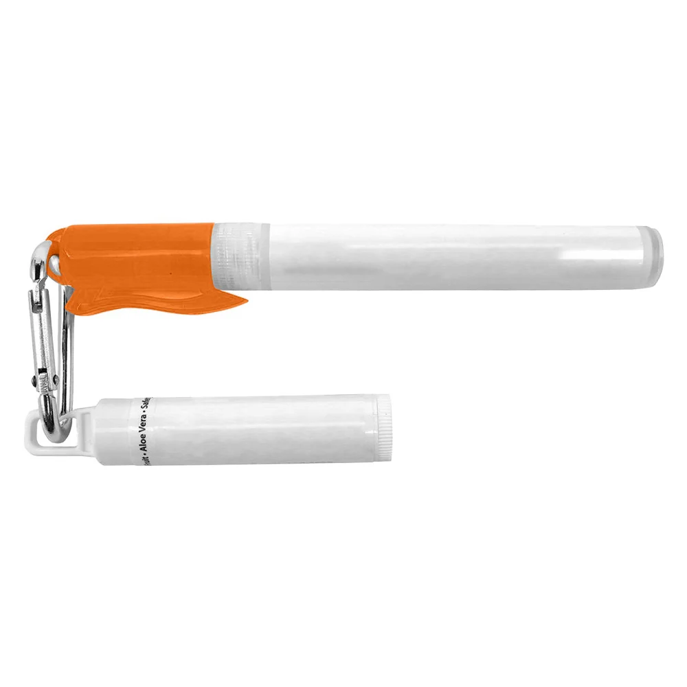 Sunscreen Spray: 5.75"H X 0.625"W, Lip Balm: 2.125"H X 0.625"D